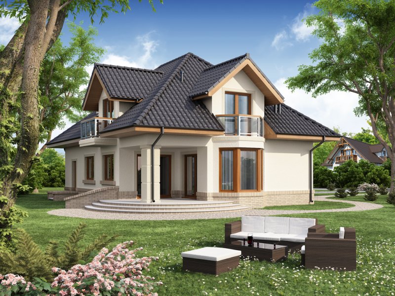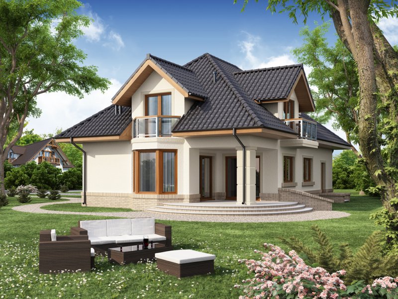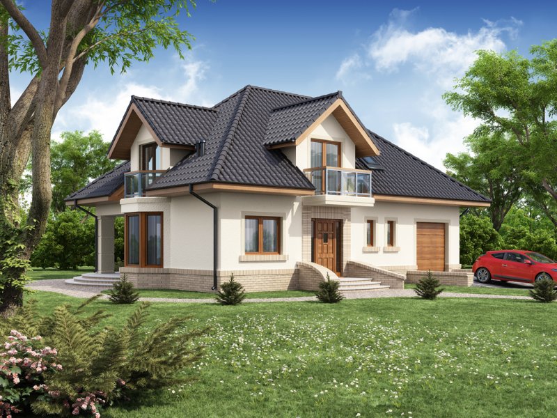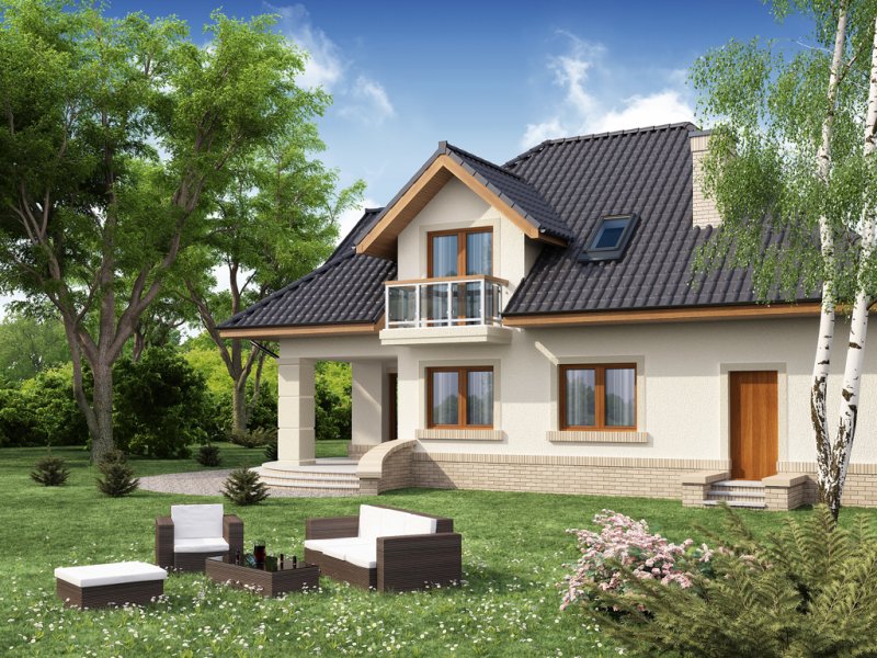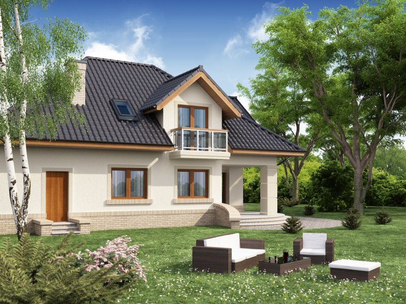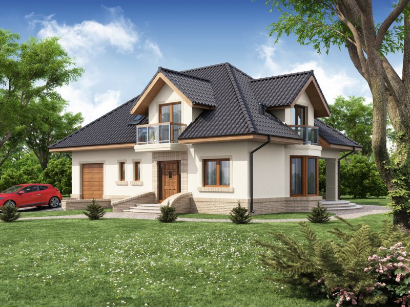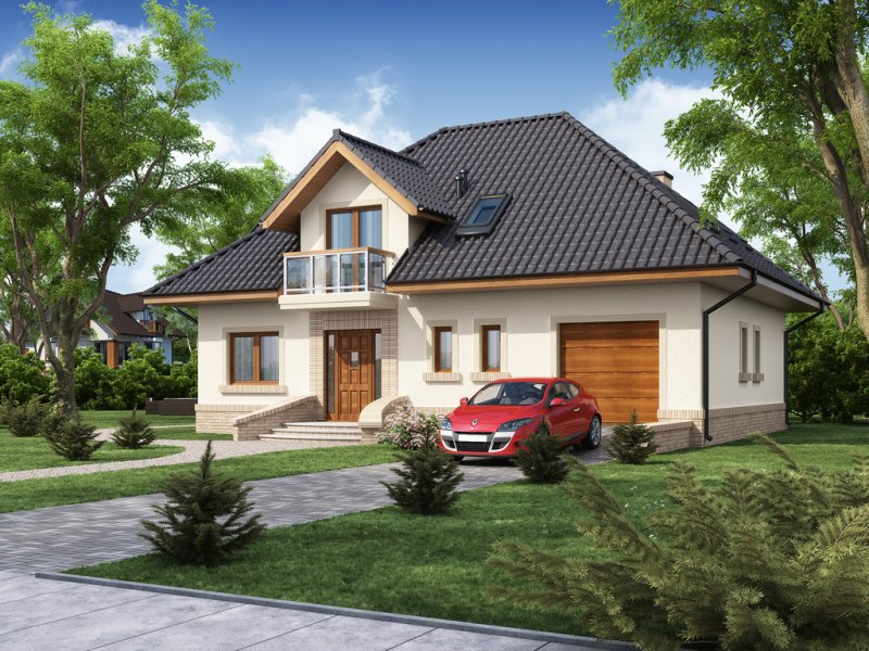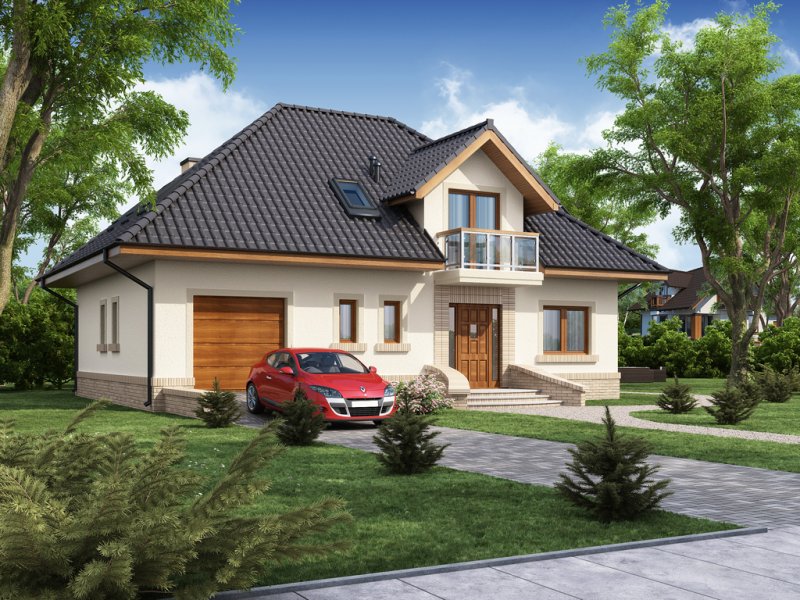 Dom jednorodzinny z użytkowym poddaszem.