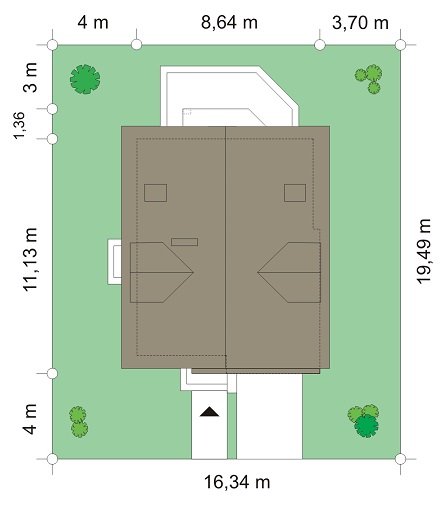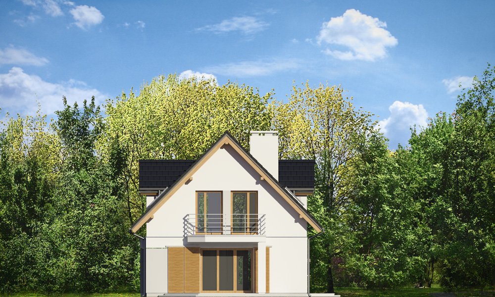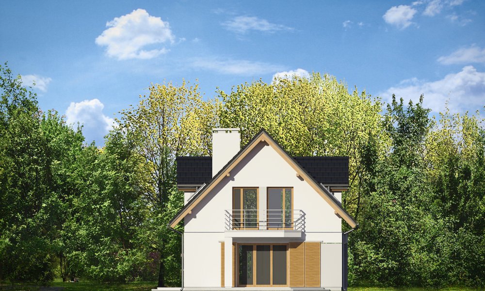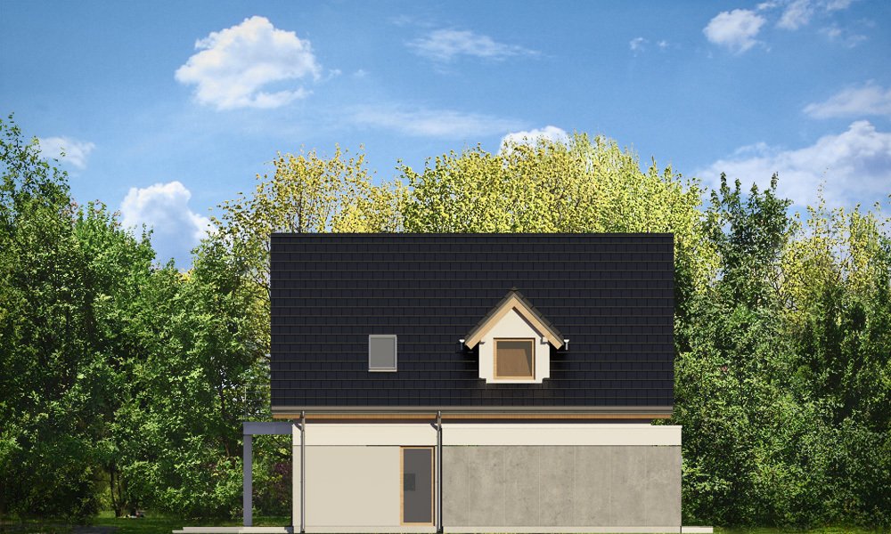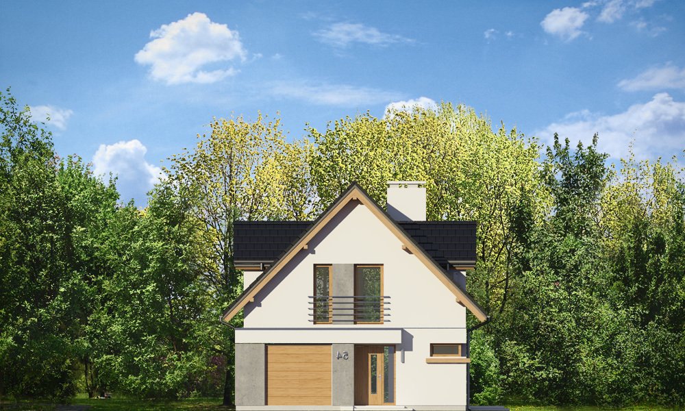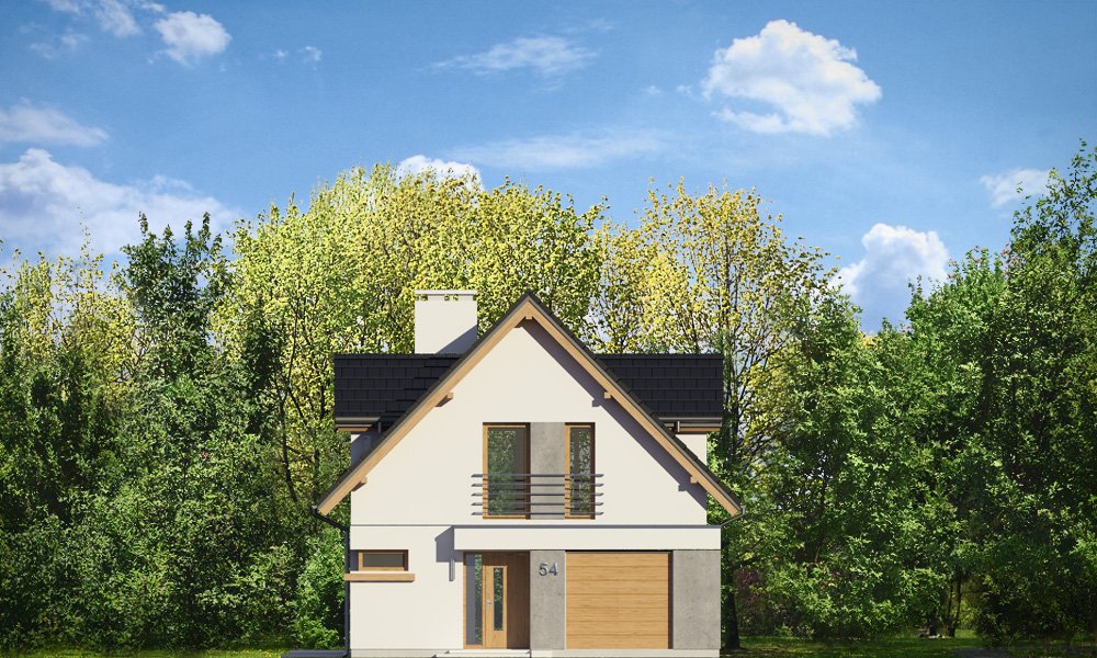 Na swoim to sympatyczny dom jednorodzinny dla 4-5cioosobowej rodziny. Z naszym projektem zbudujecie Państwo piękny dom i poczujecie się wreszcie „na swoim” ;). Zapraszamy ! Domek ma zwartą prostą bryłę. Zbudowany jest na planie prostokąta. Poddasze przykrywa dwuspadowy symetryczny dach. Architektura domu jest stonowana - nowoczesna, ale jednocześnie bezpretensjonalna. Zastosowane nowoczesne materiały, kolorystyka, układ okien, okładziny naścienne - podkreślają współczesny styl domu. Jednocześnie dwuspadowy dach osadza bryłę w tradycyjnej estetyce. Dom doskonale wkomponuje się w każde otoczenie. Dom nadaje się na bardzo wąską działkę, o szerokości nieco ponad 16 metrów. Rzadko można spotkać projekt o właściwych proporcjach, z garażem, który zmieści się na tak wąskiej parceli. Wnętrze domu to : na parterze - część dzienna z pokojem dziennym i otwartą kuchnią, garaż, kotłownia z osobnym wejściem, łazienka i bardzo praktyczne schody umieszczone blisko wejścia ( dzięki temu dzieci nie skaczą rodzicom po głowie w salonie, gdy wchodzą i wychodzą z i do domu ). Na poddaszu natomiast, to trzy sypialnie z łazienką. Dzięki zwartej bryle i bardzo dobrym izolacjom przegród, dom jest energooszczędny. Bardzo łatwo go dostosować do standardu NF40. Prosta bryła, łatwa konstrukcja pozwolą też na szybką, łatwą i niedrogą budowę budynku. Powierzchni domu umożliwia zakwalifikowanie projektu „Na swoim” do programu MDM.