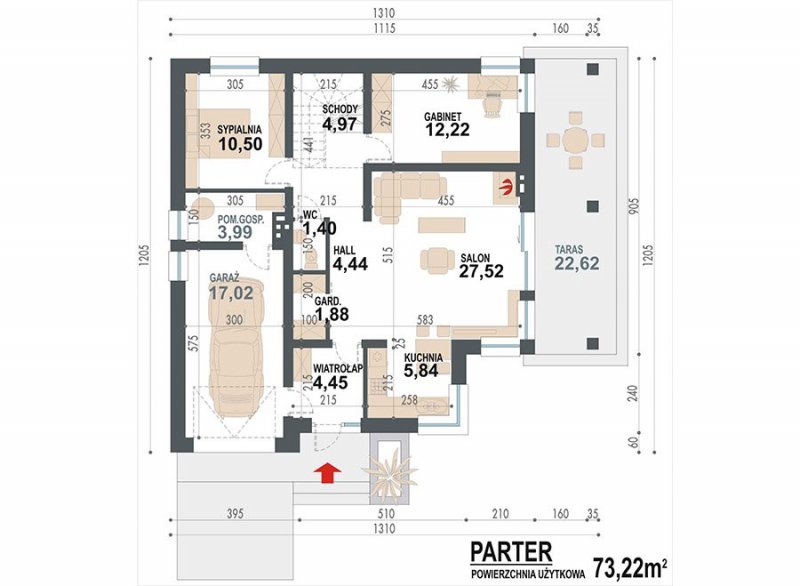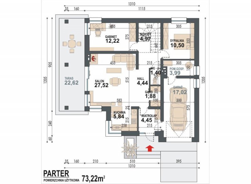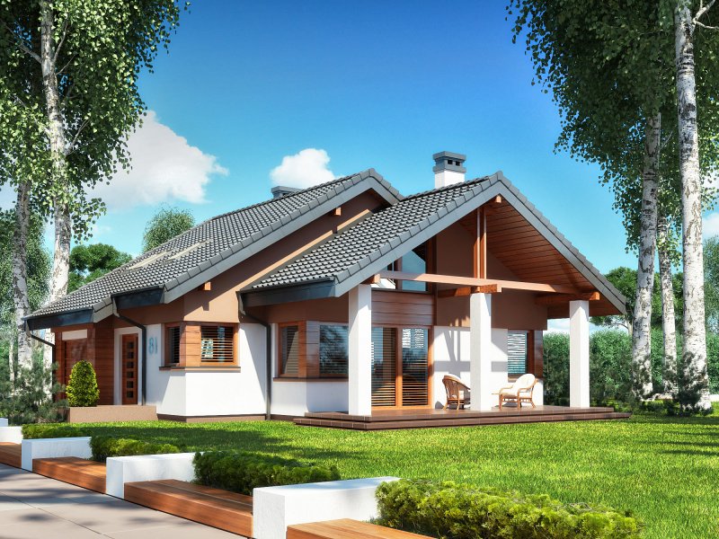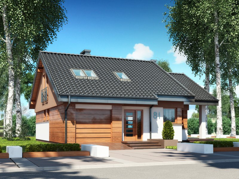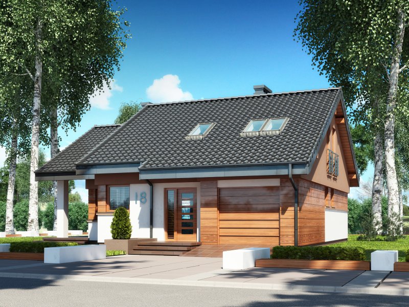 NEL II to dom przeznaczony dla osób preferujących bardziej nowoczesny charakter budynku z otwartym i i przenikającymi się przestrzeniami pomieszczeń. To ciekawa propozycja projektu domu parterowego z użytkowym poddaszem przeznaczonego dla 4-5 osobowej rodziny. Na parterze w strefie dziennej budynku poprzez otwarcie na salon kuchni oraz hallu z antresolą uzyskano jedną wielką przestrzeń o przenikających się funkcjach użytkowych. Program parteru uzupełniają:2-osobowa sypialnia, pokój(gabinet), ogólnodostępne wc, garderoba oraz garaż z pomieszczeniem gospodarczym (kotłownią). Na poddaszu budynku sumieszczono 2 sypialnie oraz łazienkę. Duży, zadaszony taras stanowi umożliwia doskonały kontakt z terenem przyległym do budynku co jest szczególnie ważną zaletą dla miłośników mieszkania w otoczeniu natury. Istnieje także wersja domu z garażem dwustanowiskowym o nazwie NEL II 2G oraz wersje parterowe domu NEL i NEL 2G (z garażem 2stanowiskowym).