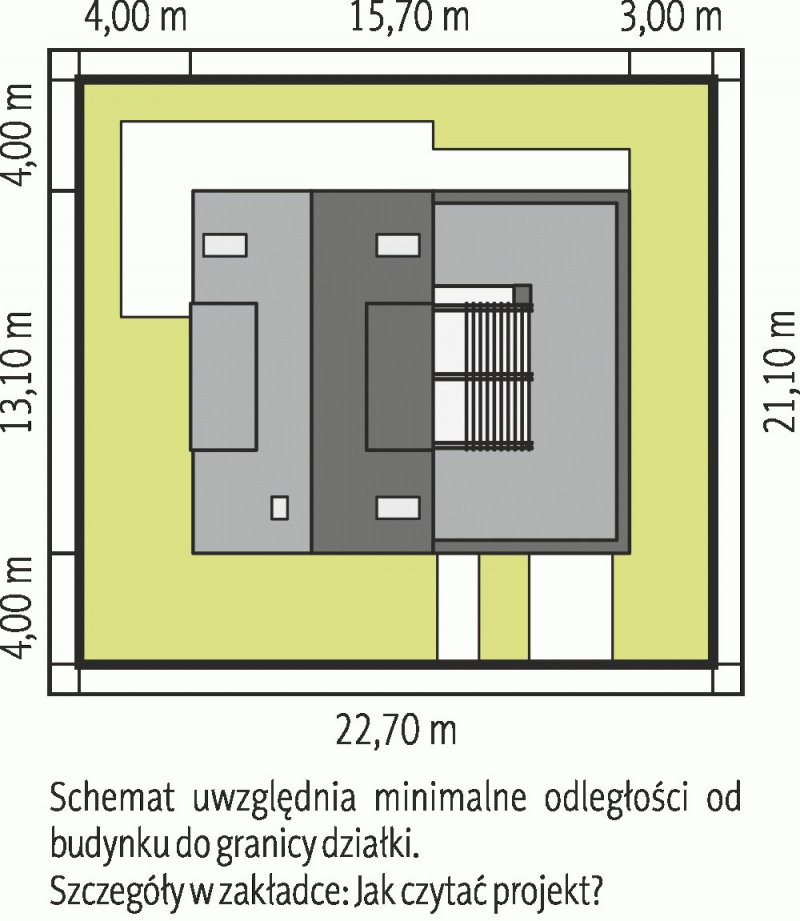 - Min. wymiary działki 22.70x21.10 m