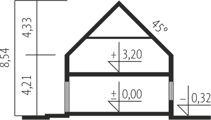 - Kąt nachylenia dachu 45.00°