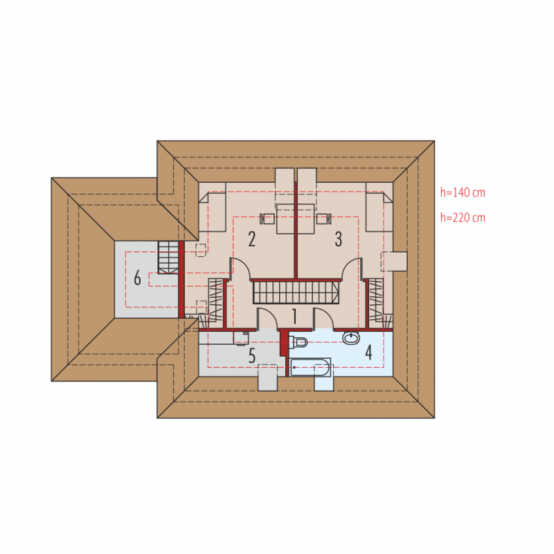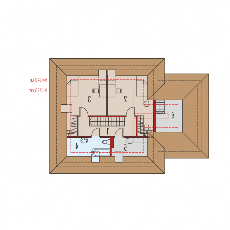 - Dach o konstrukcji drewnianej pokryto dachówką płaską lub inną o podobnych parametrach
