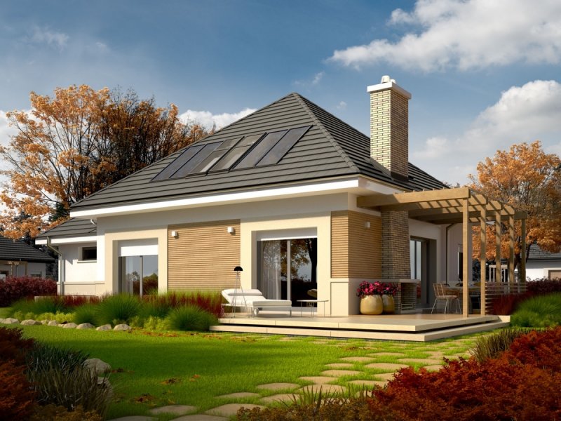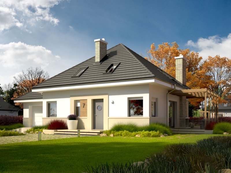 Niki G1 to dom, który od pierwszego wejrzenia czaruje swoim przytulnym wdziękiem. Wizytówką domu jest zharmonizowana z otoczeniem, dopasowana do bryły budynku elewacja. Atrakcyjny efekt estetyczny akcentuje udane połączenie eleganckiej bieli, smakowitej kawy i orzechowego drewna. We wnętrzu czeka na domowników wygodny układ funkcjonalny z reprezentacyjnym salonem w roli głównej. Charakterystycznym elementem architektury budynku jest taras z dekoracyjną pergolą, który tworzy zaciszny azyl rekreacyjny. Wieczory i uśmiechy rozświetli mieszkańcom atrakcyjny kominek zewnętrzny. Dom wyposażono również w przestronny garaż.