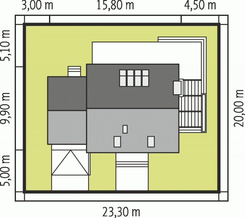 - Min. wymiary działki 23.30x20.00 m