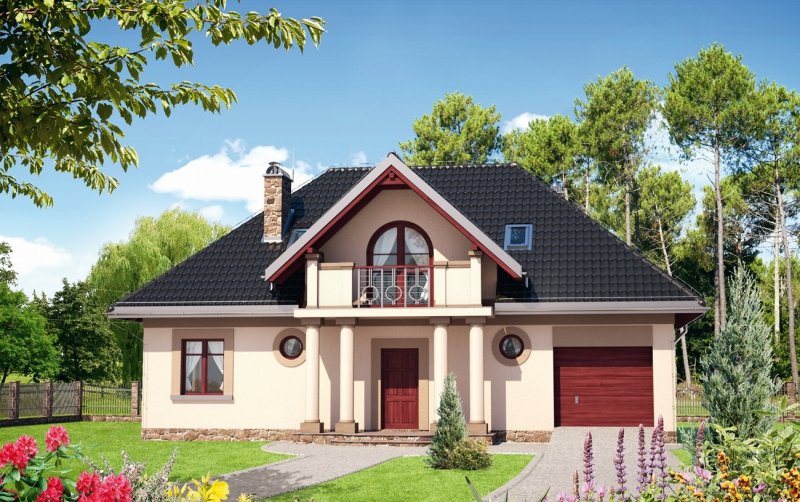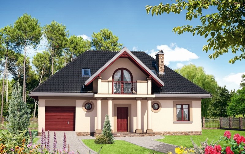 Budynek parterowy z użytkowym poddaszem, niepodpiwniczony. Na parterze znajduje się sień, hol, w.c., kuchnia oraz garaż połączony z kotłownią, a także pokój dzienny z jadalnią. Na poddaszu umieszczono cztery pokoje sypialne, łazienkę i przedpokój. Bryłę budynku tworzy prostopadłościan nakryty dachem czterospadowym, symetrycznym o kącie nachylenia połaci 42°. Urozmaica ją od frontu balkon oparty na słupach tworząc zadaszenie podestu wejściowego, a także balkon od strony ogrodu. Charakterystyczne są też owalne okienka na frontowej elewacji.