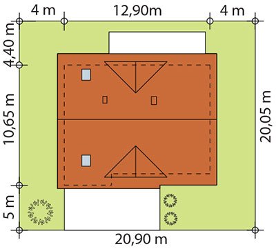- Min. wymiary działki 20.90x20.05 m