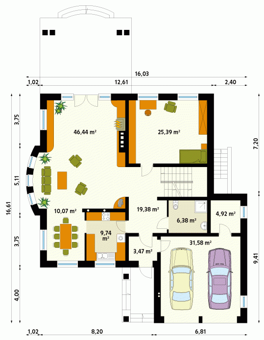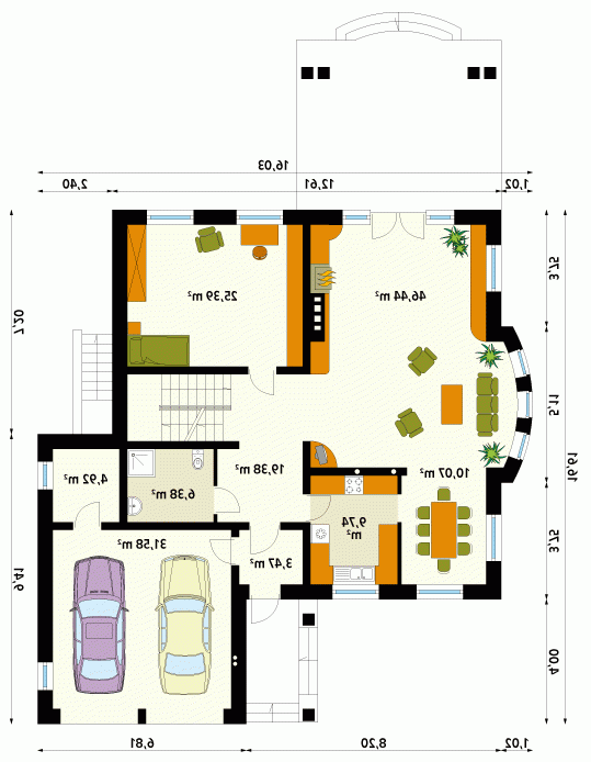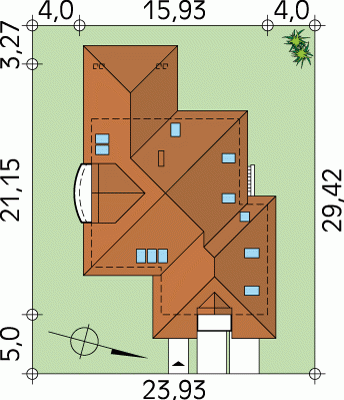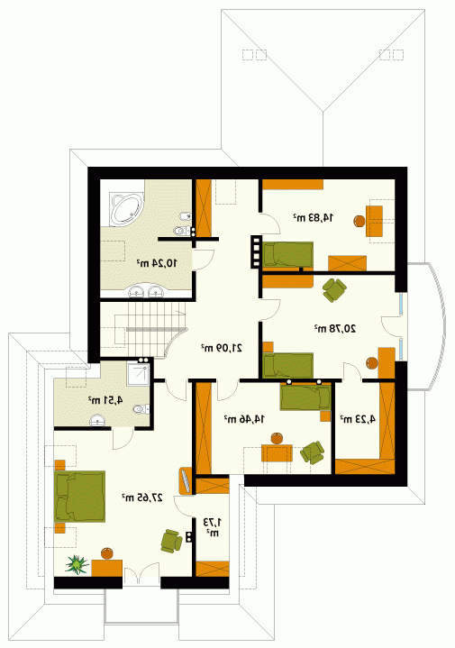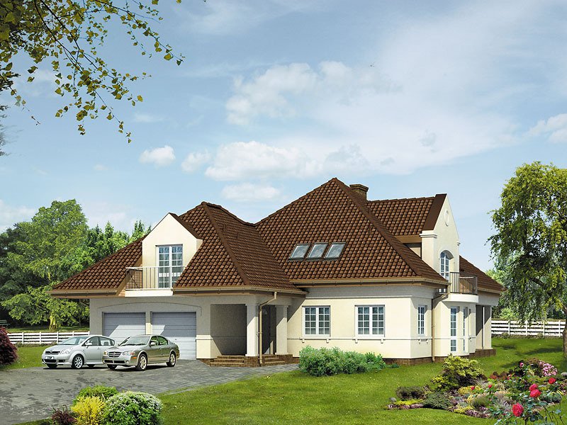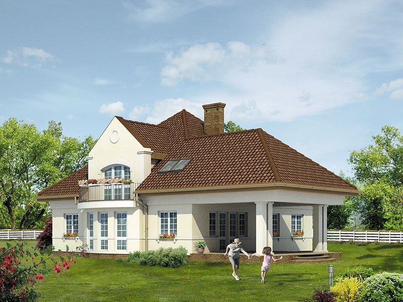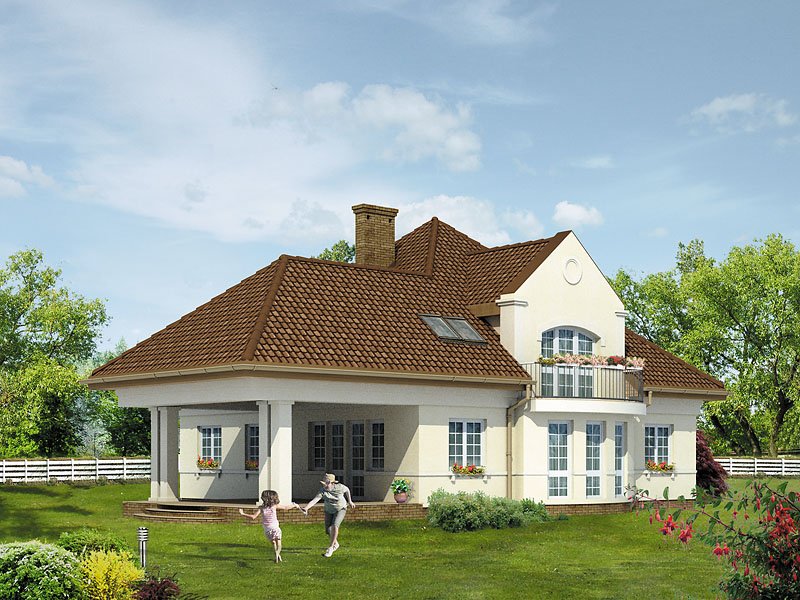 Duży, przestronny dom z wieloma pokojami dla licznej rodziny. Na parterze zaprojektowano dodatkowy pokój przeznaczony jako gabinet lub dla gości.