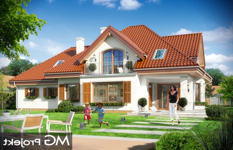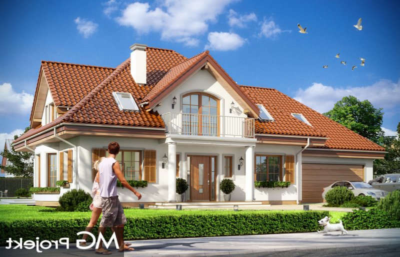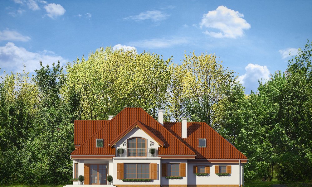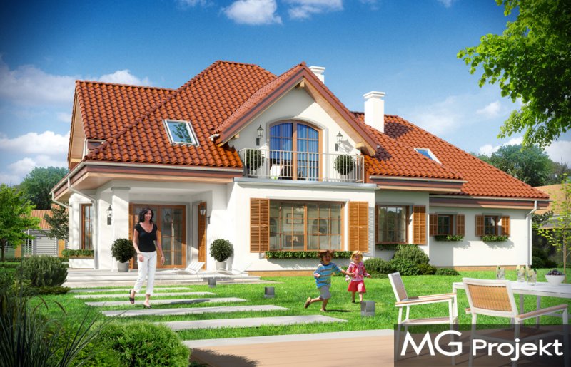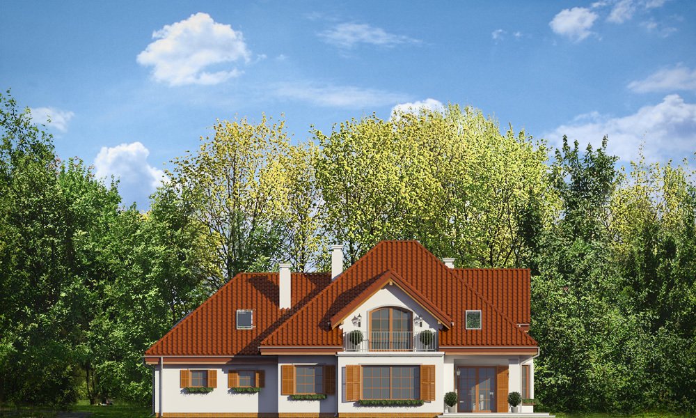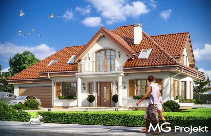 Ofelia to propozycja z grupy domków, których protoplastą jest popularny domek Julka. Domek dzięki swojej symetrycznej elewacji z frontowym gankiem i dużą lukarną z balkonem nad drzwiami wejściowymi, przypomina również również inny dom z naszej kolekcji - Benedykt 2. W czasach gdy wszyscy gonią za nowoczesnością miło mieć punkt odniesienia – coś niezmiennego, niewychodzącego z mody. Dom o trwałej tradycyjnej architekturze, który na pewno nie zestarzeje się, gdy przeminie moda na kolejne domy – pudełka. Ofelia to wzorowy reprezentant stylu „dworkowego”, a do tego dom o nowoczesnym funkcjonalnym wnętrzu, zaprojektowany w nowoczesnej i energooszczędnej technologii. Bezpretensjonalna architektura, z zachowaną harmonią, proporcjami i symetrią każdej elewacji, doskonale wkomponuje się w każde otoczenie. Bryła budynku jest reprezentacyjna, ale zachowuje ludzką skalę. Na parterze zaprojektowano otwartą część dzienną - z salonem, aneksem jadalnym, kuchnią i holem, dwa dodatkowe pokoje, oraz część gospodarczą – garaż i kotłownię. Na poddaszu przewidziano trzy wygodne sypialnie z garderobami, oraz dużą łazienkę. Nad garażem znajduje się strych, który można wykorzystać jako poddasze. Wygoda i przestrzeń to podstawowe atutu tego projektu. Nic nie jest tutaj na niby – to prawdziwa mała rezydencja. Mamy tu spiżarnię, jadalnię w której zmieści się duży stół, salon, w którym zmieszczą się meble wypoczynkowe, szerokie i wygodne schody, duży hol czy przedsionek. Materiały i technologie zastosowane w projekcie są energooszczędne, układ konstrukcji jest klarowny i nie sprawi kłopotu wykonawcy podczas budowy. Projekt z pewnością przypadnie do gustu osobom szukającym komfortowego, dobrze przemyślanego domu, którzy z jednej strony marzą o reprezentacyjnej willi, z drugiej strony nie chcę przesadzić z wielkością domu. Pracownia posiada również odbicie lustrzane projektu.