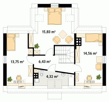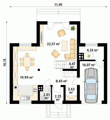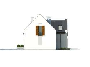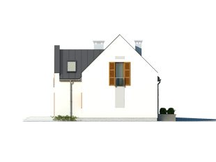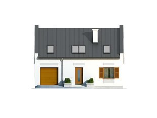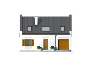 Budynek mieszkalny jednorodzinny z użytkowym poddaszem. Charakteryzuje go jednoprzestrzenny parter, funkcjonalne poddasze oraz nowoczesny wygląd.