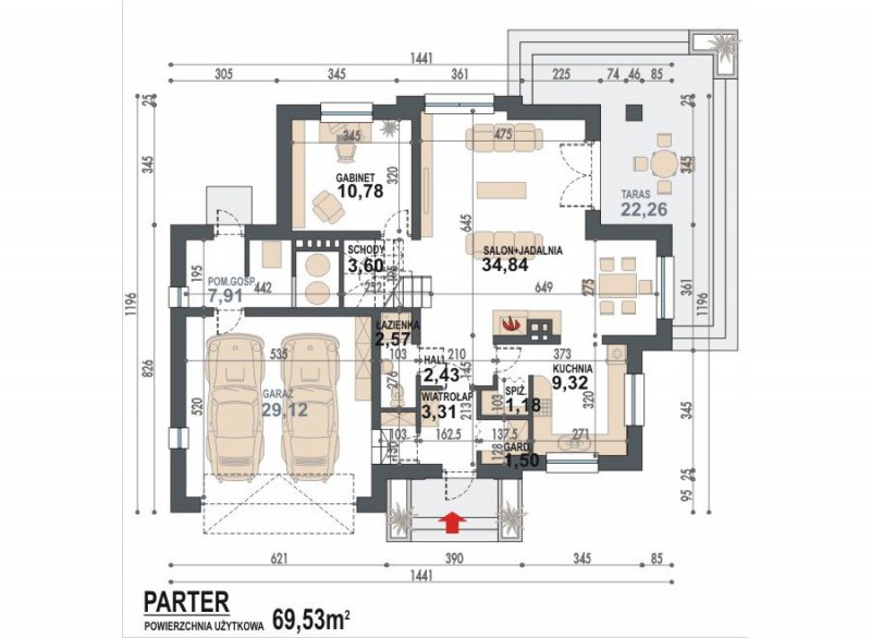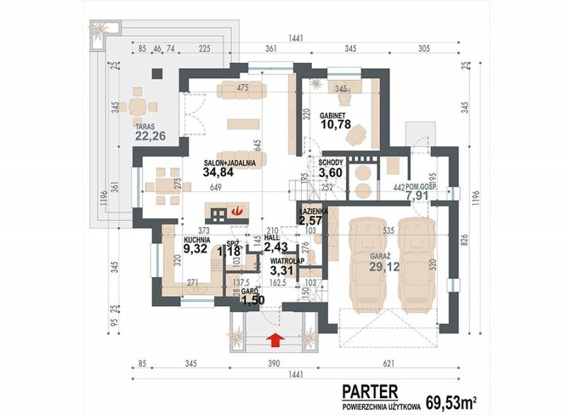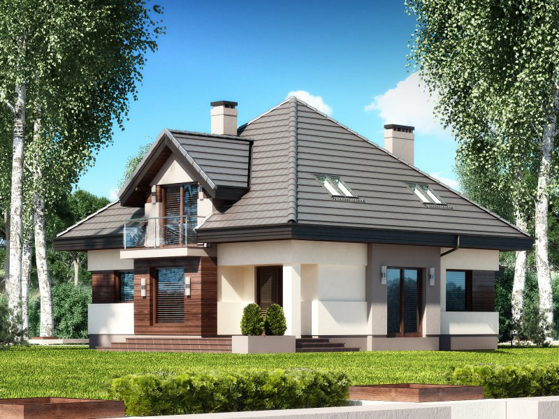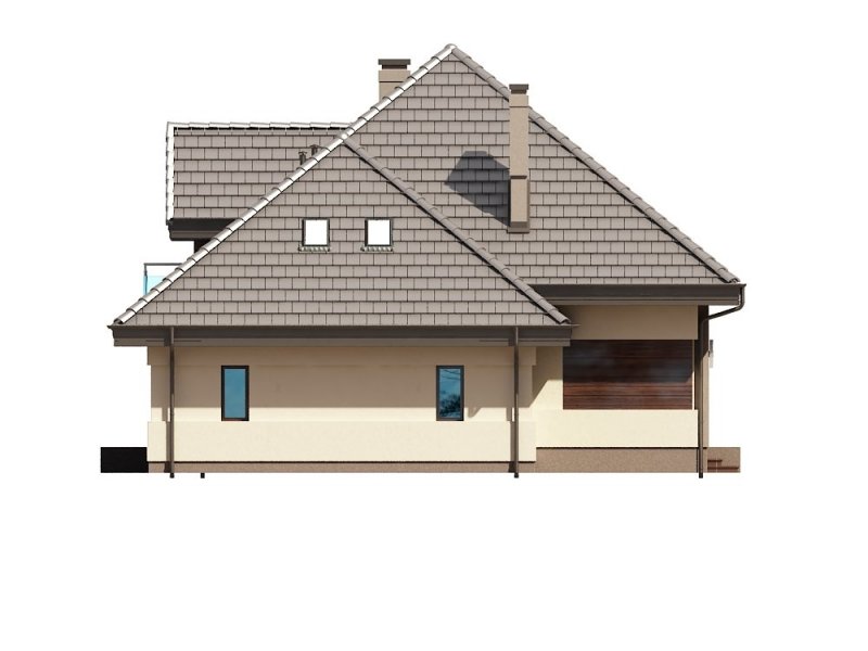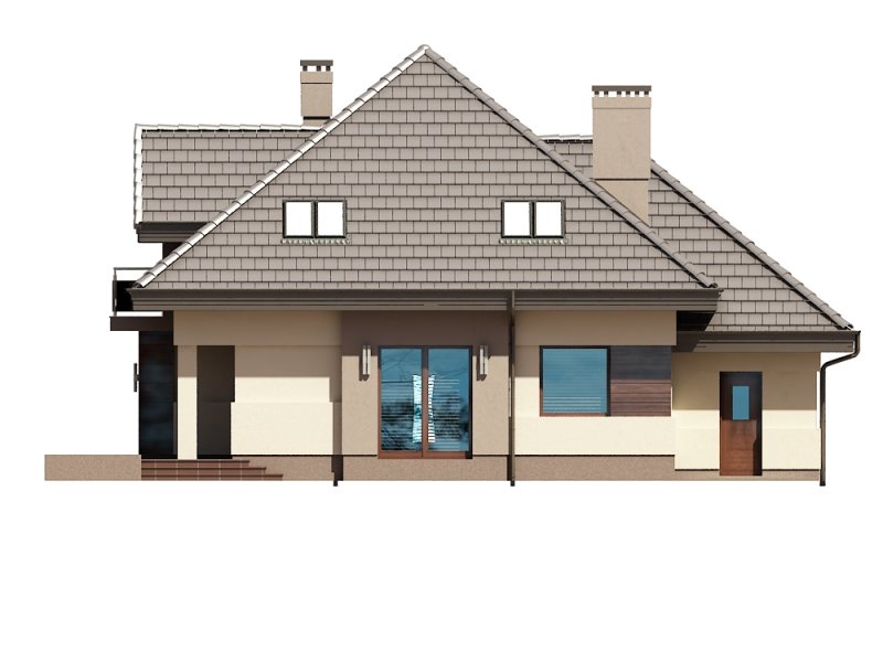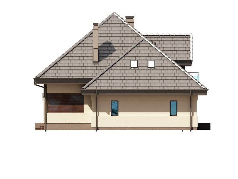 Projekt Opałek III N 2G jest najnowszą wersją jednego z najbardziej lubianych przez naszych klientów projektu – Opałka II N 2G. W nowym Opałku na parterze wygospodarowano miejsce na niewielką spiżarnię dostępną z kuchni. Zmiana kształtu salonu pozwoliła na wygospodarowanie zadaszonego tarasu. Powstała też atrakcyjnie wydzielona jadalnia. Pozostałe pomieszczenia domu pozostały bez zmian. Elewacje domu zostały uatrakcyjnione poprzez bryłę jadalni oraz zadaszony taras. Kolorystyka została opracowana zgodnie z obecnymi trendami. Podobnie jak w wersji poprzedniej wejściową część domu zajmuje wiatrołap, łazienka, garderoba oraz kuchnia ze spiżarnią. Hol prowadzi do salonu połączonego z jadalnią. W nowej wersji Opałka salon ma foremny, prostokątny kształt. W tylnej części domu usytuowany jest jeden pokój idealnie pasujący na gabinet. Na poddasze prowadzą ozdobne, ażurowe schody. Strefę nocną tworzą trzy sypialnie i łazienka o zwiększonej powierzchni. Duża sypialnia została zaprojektowana z myślą o jak najlepszym komforcie jej użytkowników - prowadzą z niej wejścia do oddzielnej łazienki i garderoby. Przewidziano także wersję poddasza z 4 sypialniami dla 5-osobowej rodziny - zobacz rzuty poddasza OPCJA - CZTERY POKOJE.