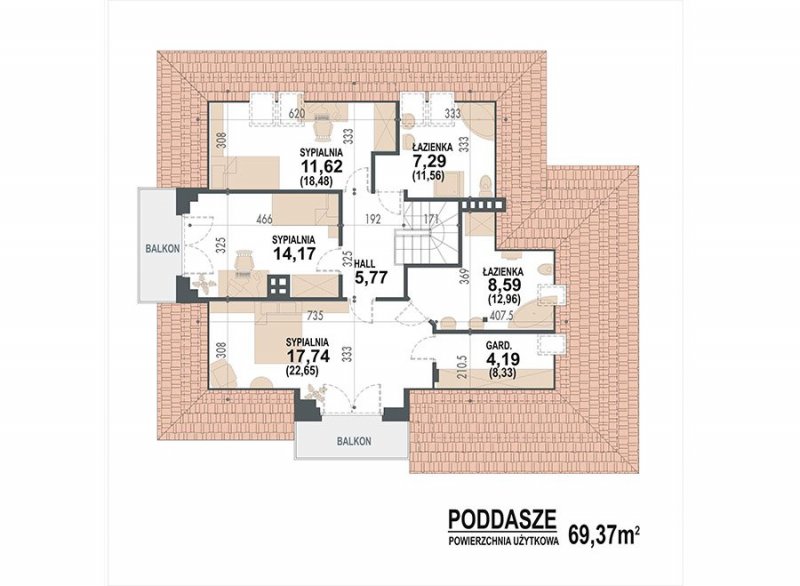 dach: o konstrukcji drewnianej, pokryty dachówką ceramiczną, cementową lub blachodachówką