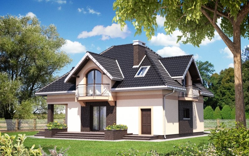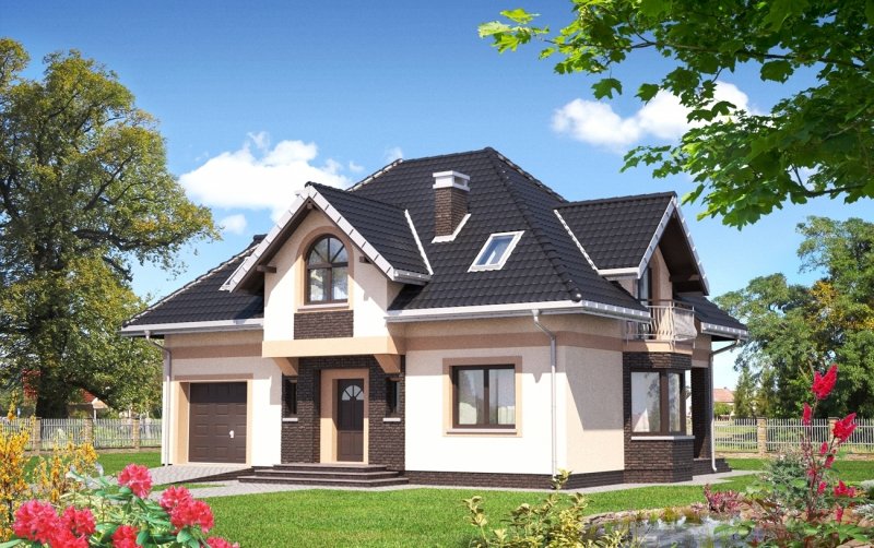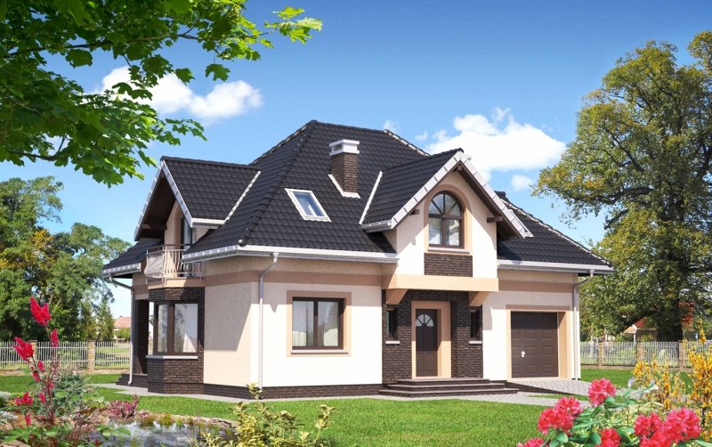 Zbliżony do kwadratu plan z częścią mieszkalną i garażową oraz czterospadowy dach z lukarnami w każdej połaci i balkonami to cechy kilku rozwiązań domów o powierzchni użytkowej ok. 135m2. W projekcie domu Opus krótka kalenica jest równoległa do drogi dojazdowej, a frontowe drzwi osłania wykusz. Program funkcjonalny parteru, choć przypomina Glorię centralnym usytuowaniem otwartych schodów, nie przewiduje dodatkowego pokoju na parterze. W zamian ma od ogrodu narożną, cienistą wnękę z tarasem, która oddziela salon od jadalni ulokowanej w ośmiokątnym ryzalicie (jak w zbliżonych: Prymusie Lux, Dymszy Karo). Bardzo duży, otwarty pokój dzienny, rozciąga się od kuchni ze spiżarnią przy wejściu, aż do ogrodu. Garaż z kotłownią tworzą osobny trakt konstrukcyjny, dostępny z sieni. Na poddaszu w projekcie domu Opus rozmieszczono cztery różne kształtem i wielkością pokoje z garderobami oraz łazienkę. Jak zawsze pod skosami dachu i lukarn powstała charakterystyczna przestrzeń; i tak np. w głównej sypialni wydzielić można bardziej ustronną część z łóżkiem i garderobą oraz dobrze oświetlone miejsce do pracy, a nawet niewielką, prywatną łazienkę.