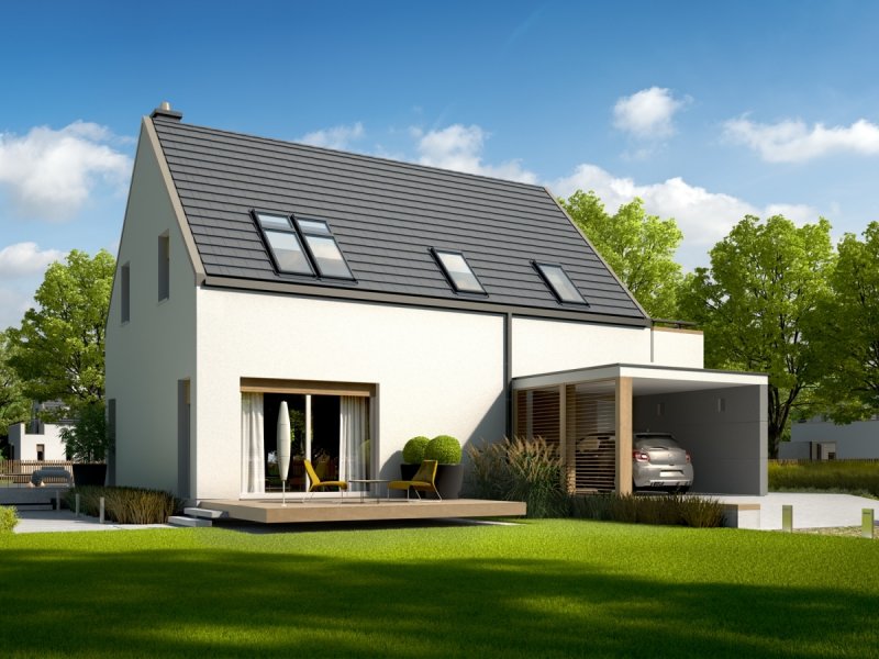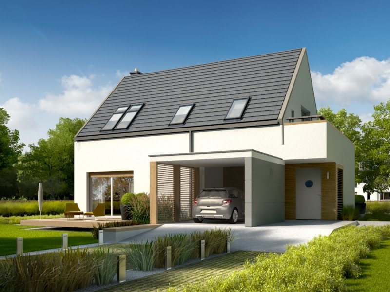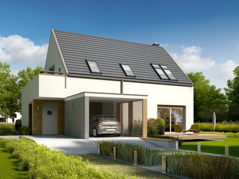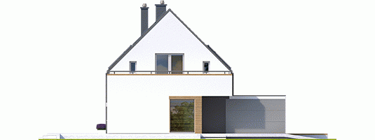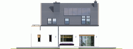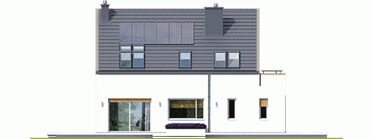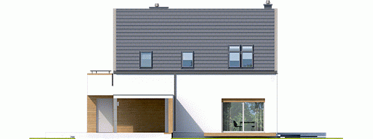 Oskar to nowoczesny, energooszczędny dom o zwartej bryle, z prostym, tanim w realizacji dachem dwuspadowym. Ciekawym akcentem architektonicznym, przełamującym klasyczną formę budynku jest wiata, wzbogacona drewnianymi detalami. Dzięki dużej ilości okien, w tym okien połaciowych, dom jest wypełniony naturalnym światłem. Duże okno w jadalni subtelnie zaciera granicę między wnętrzem a tarasem, zachęcając domowników do spożywania posiłków w towarzystwie matki natury. Podobne rozwiązanie zastosowano w salonie, przedłużając jego przestrzeń o komfortową strefę tarasu, zlokalizowanego od strony ogrodowej. Uwagę zwraca również atrakcyjny taras zlokalizowany nad strefą wejściową, będący dopełnieniem wyciszonej strefy nocnej. Wygląd zewnętrzny domu koresponduje z estetyczną ascezą, harmonijnie dopasowując się do krajobrazu działki.