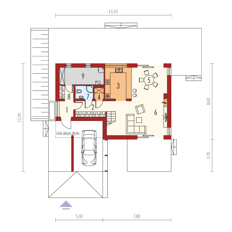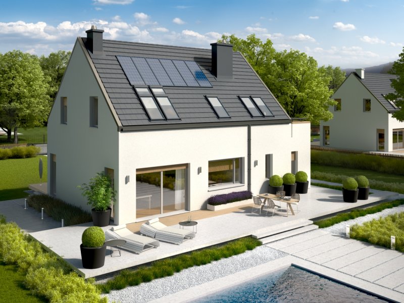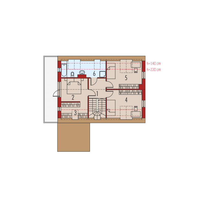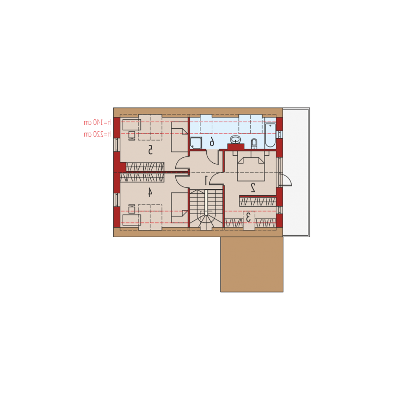 - Dach o konstrukcji drewnianej pokryto dachówką płaską lub inną o podobnych parametrach