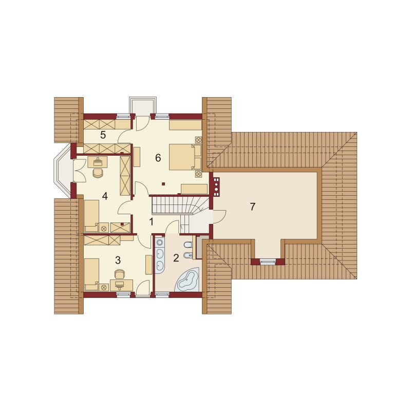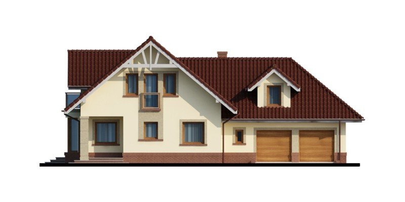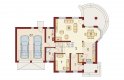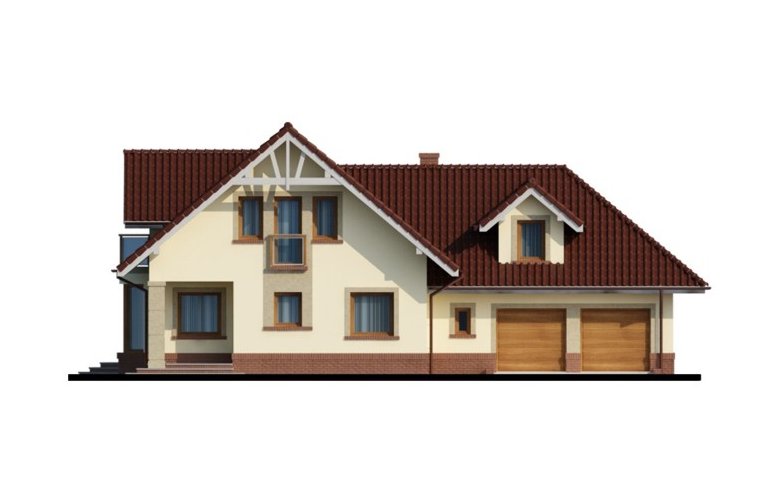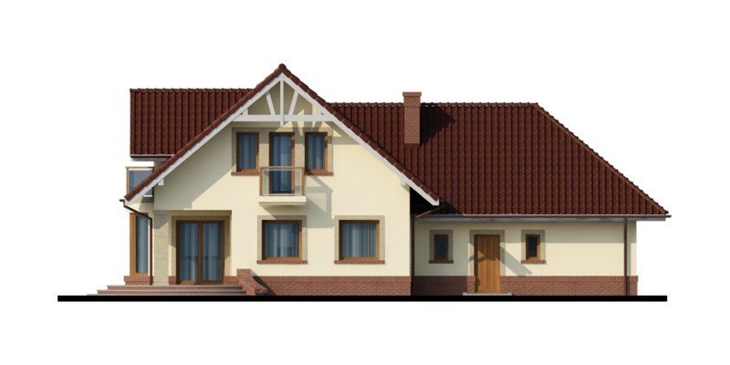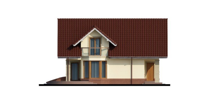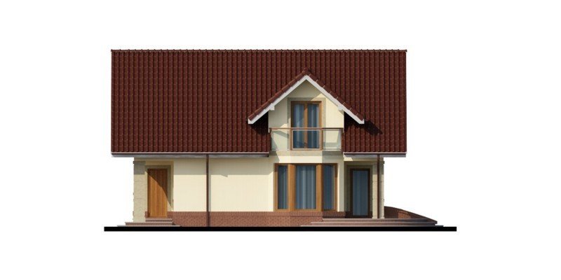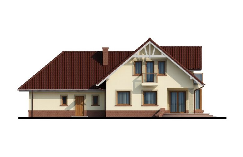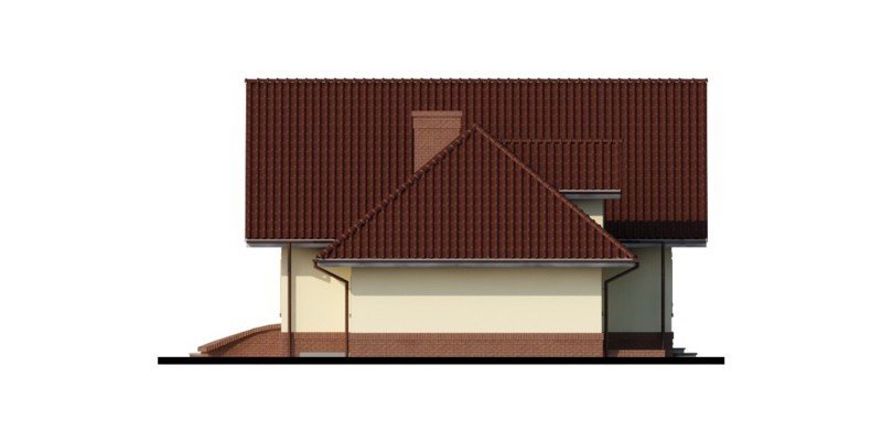 Gustowny dom parterowy z poddaszem użytkowym. Idealny dla 4-5 osobowej rodziny. Jego elegancka forma daje komfort domownikom oraz cieszy oko przechodniów. Klasyczny podział na strefę dzienną na parterze oraz nocną na poddaszu sprawia, że dom jest niezwykle funkcjonalny i praktyczny. Duży salon z ciekawie umiejscowionym kominkiem, jadalnia i przestronna kuchnia to miejsce na wspólne spotkania rodzinne. Na parterze zaprojektowano pokój, który może pełnić rolę gabinetu, jak również dodatkowej sypialni dla gości. Praktycznym rozwiązaniem jest dostęp do garażu od strony elewacji ogrodowej. Umożliwia łatwy dostęp do części gospodarczej domu. Poddasze to trzy sypialnie oraz obszerna łazienka. Sypialnia gospodarzy posiada prywatną garderobę, która zwiększa swobodę domowników. Obszerny strych możemy zaadaptować na dodatkowy pokój hobby oraz garderobę z praktycznym schowkiem.