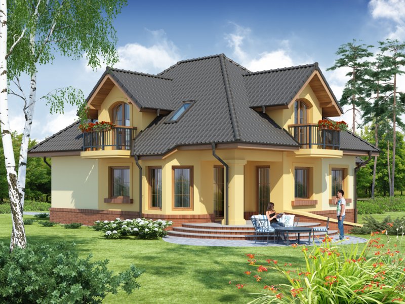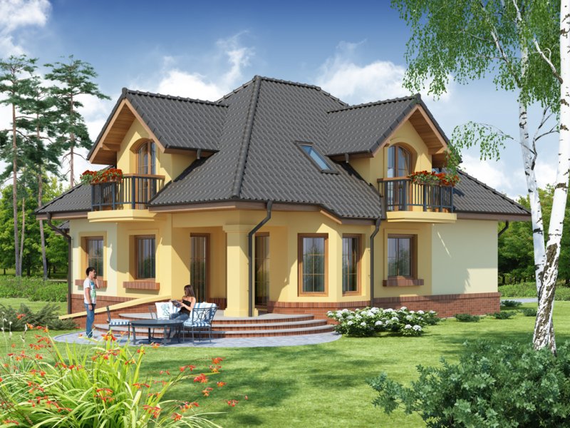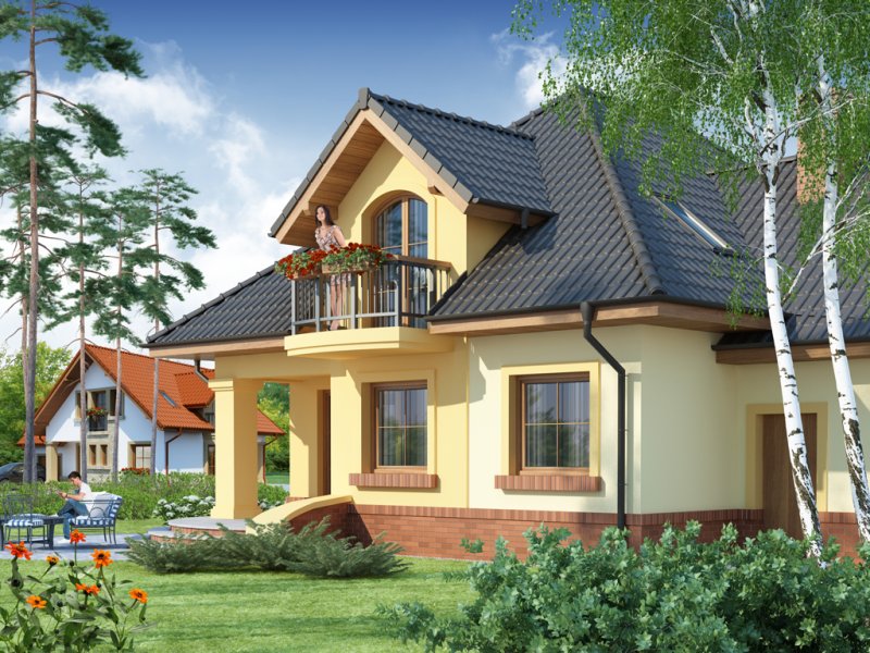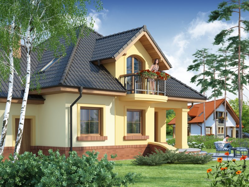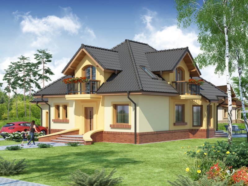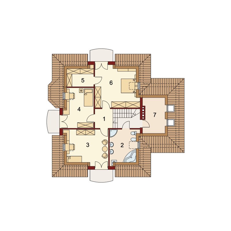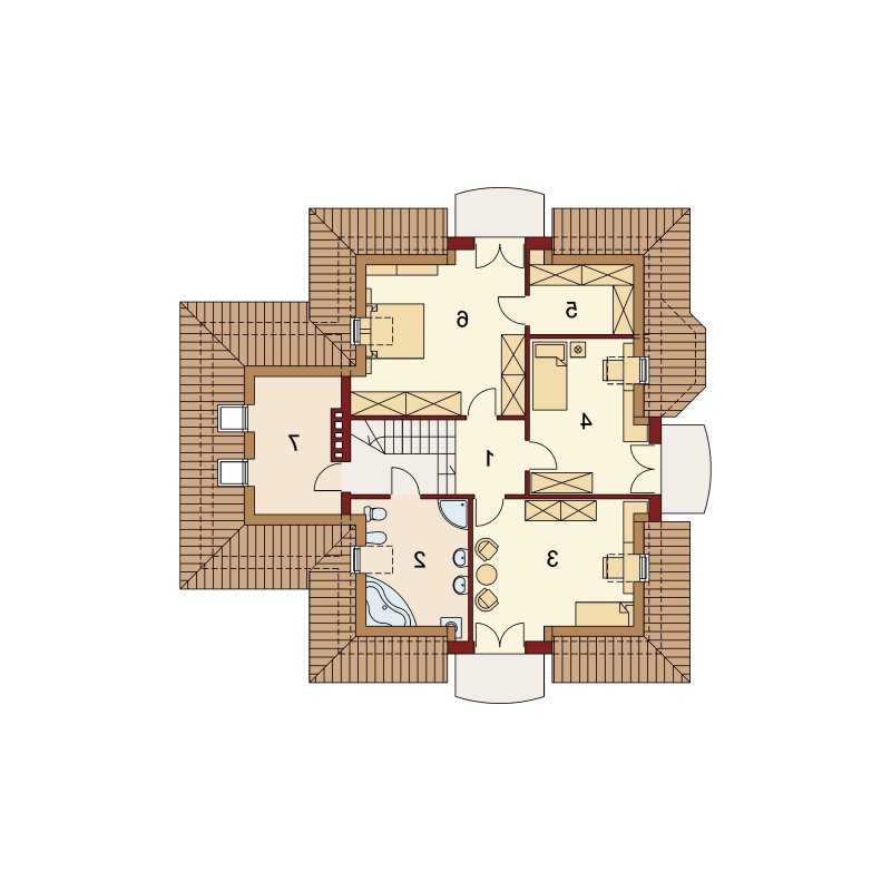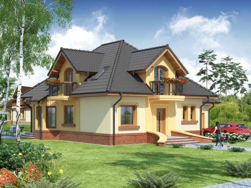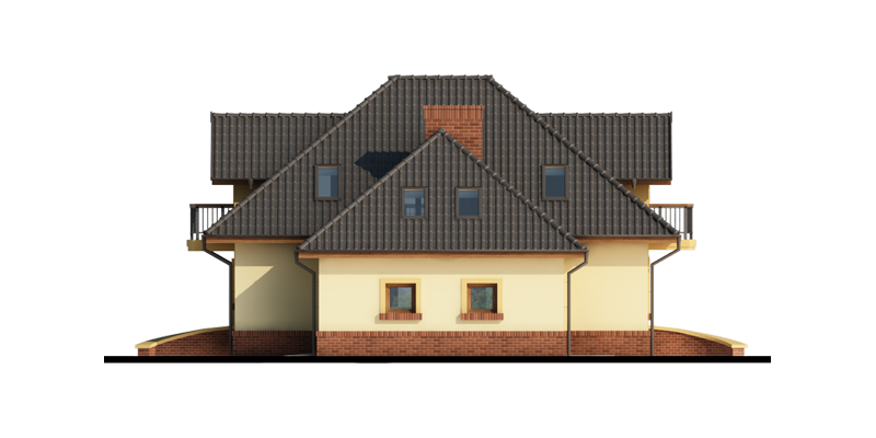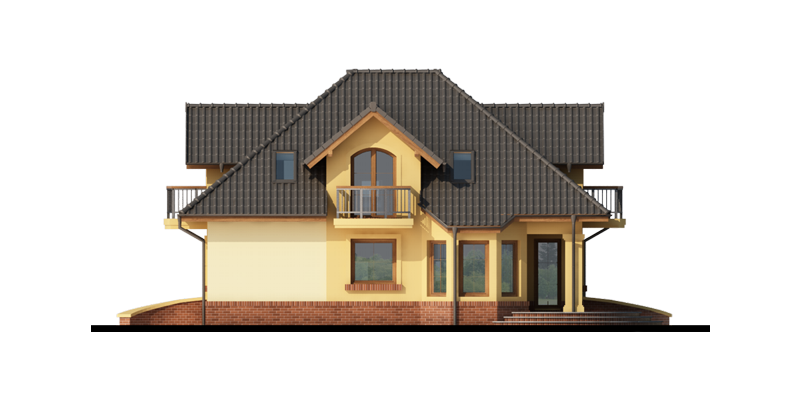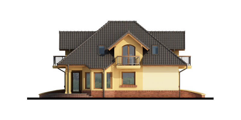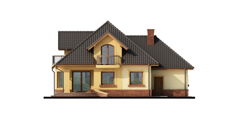 Dom z poddaszem użytkowym, przeznaczony dla 4-5-osobowej rodziny. Na parterze znajduje się przestronny pokój dzienny połączony z jadalnią i otwartą kuchnią. Rozwiązanie funkcjonalne pozwala na oddzielenie ww. pomieszczeń.
