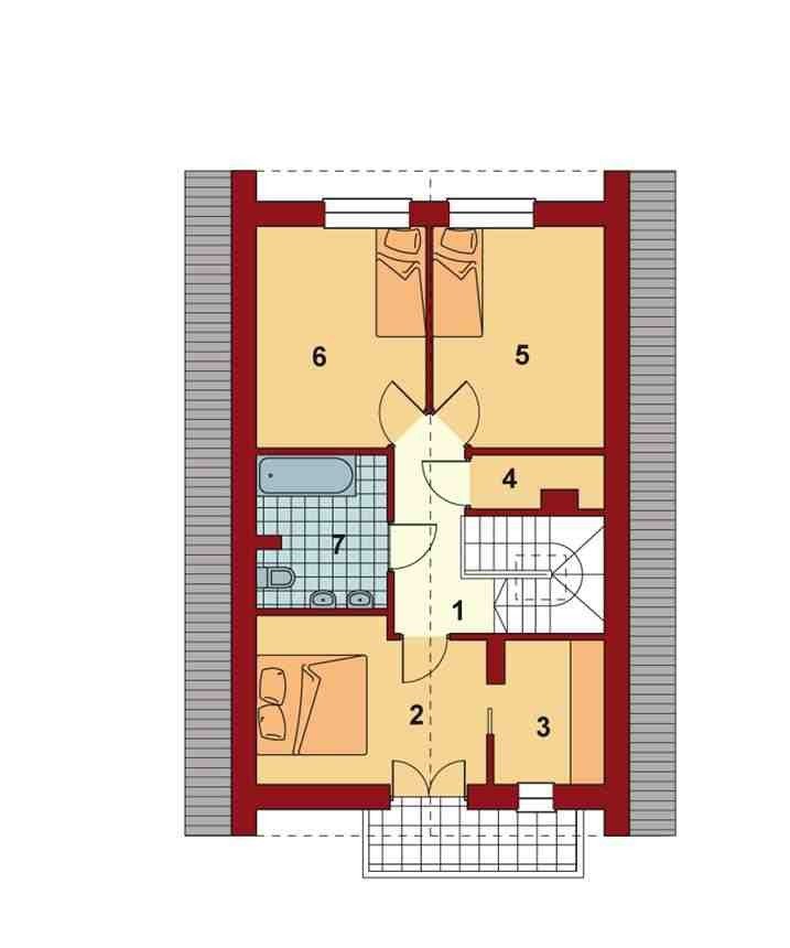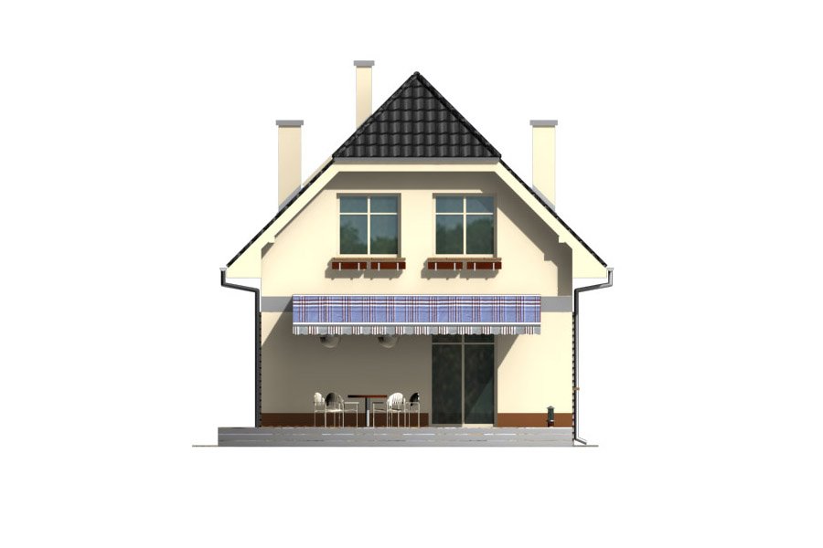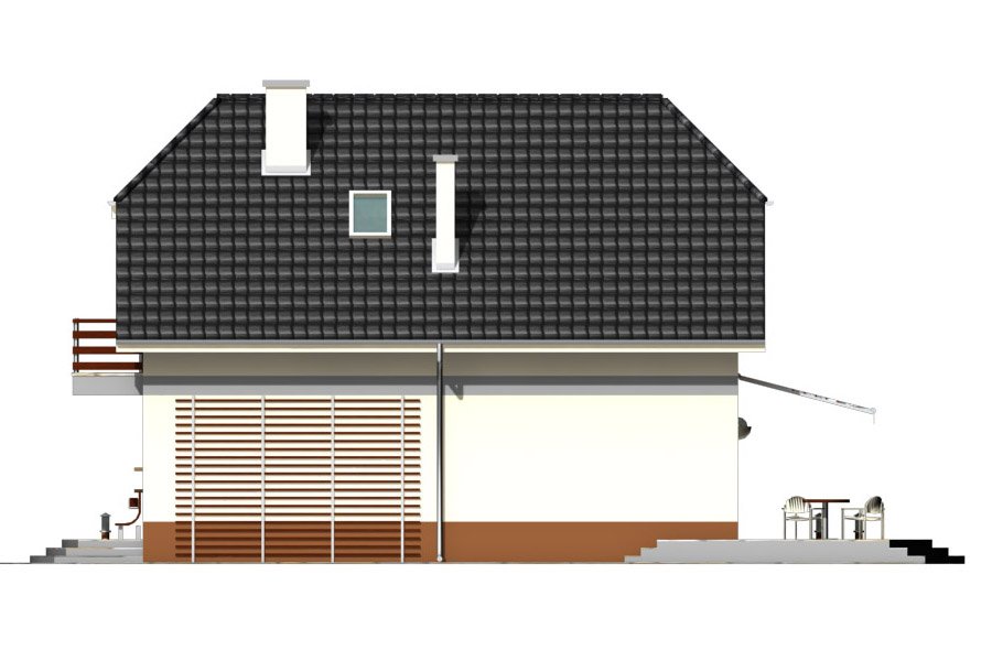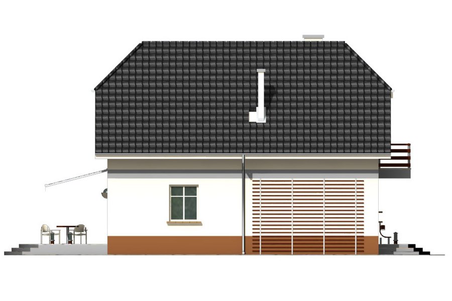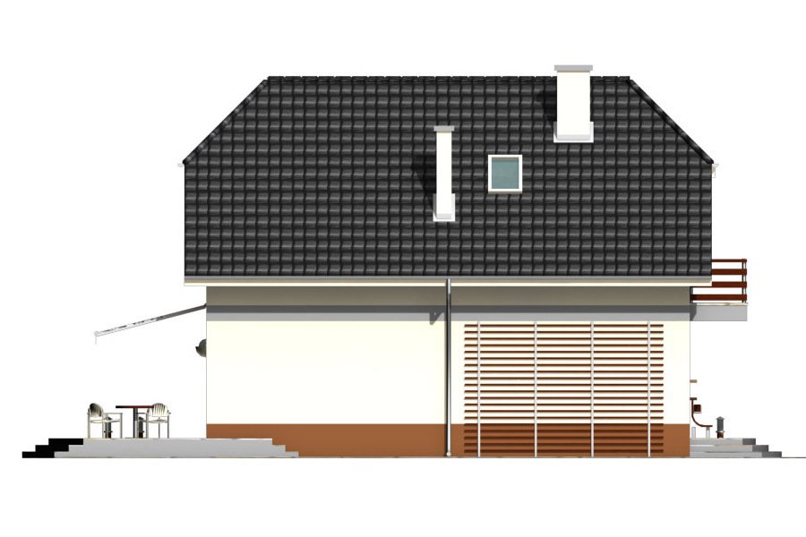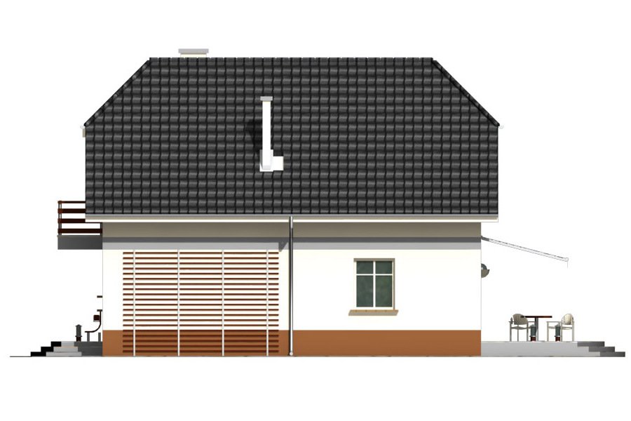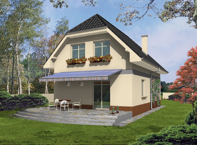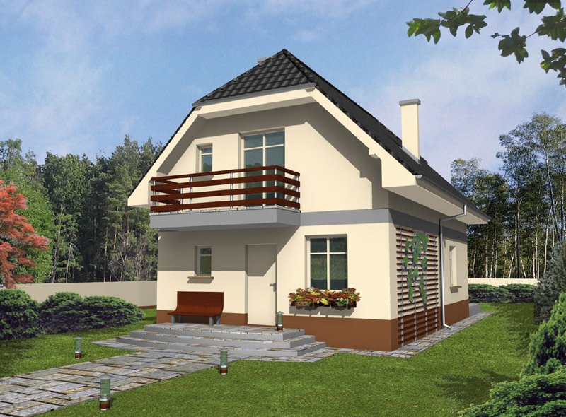Piotrek jest niewielkim, ale wygodnym, parterowym domem z użytkowym poddaszem, przeznaczonym dla 4-5 osobowej rodziny. Część dzienna na parterze składa się z wiatrołapu, hallu, wygodnej kuchni, pokoju dziennego z jadalnią wychodzącego na taras ogrodowy, WC i kotłowni z pom. gospodarczym. Część nocną na poddaszu tworzą trzy wygodne sypialnie w tym jedna z własną garderobą i balkonem od frontu, hall i duża łazienka.