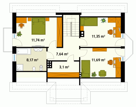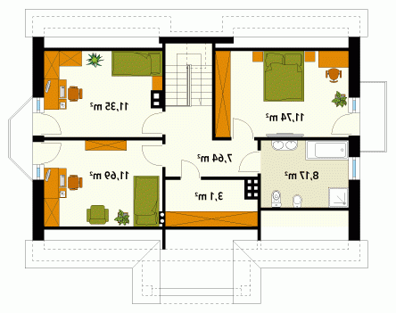 Dom jednorodzinny, parterowy z użytkowym poddaszem. Budynek o spokojnej, tradycyjnej bryle. Przestronne, jasne wnętrza zapewnią mieszkańcom komfort i wygodę. Duża łazienka na poddaszu.