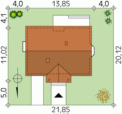 - Min. wymiary działki 21.85x20.12 m