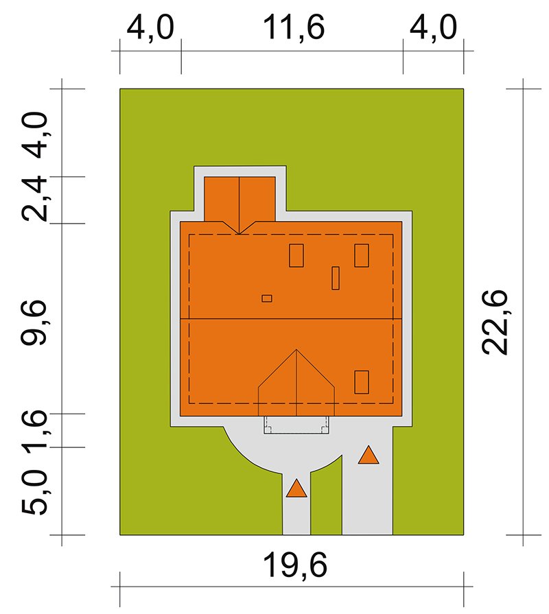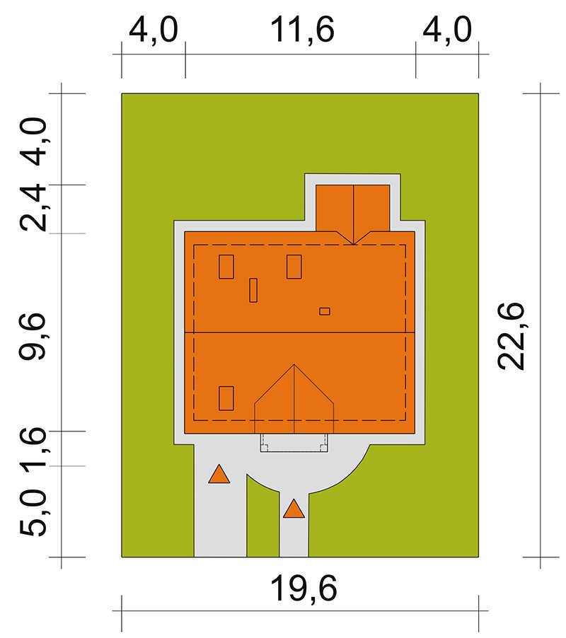 - Min. wymiary działki 19.60x22.60 m