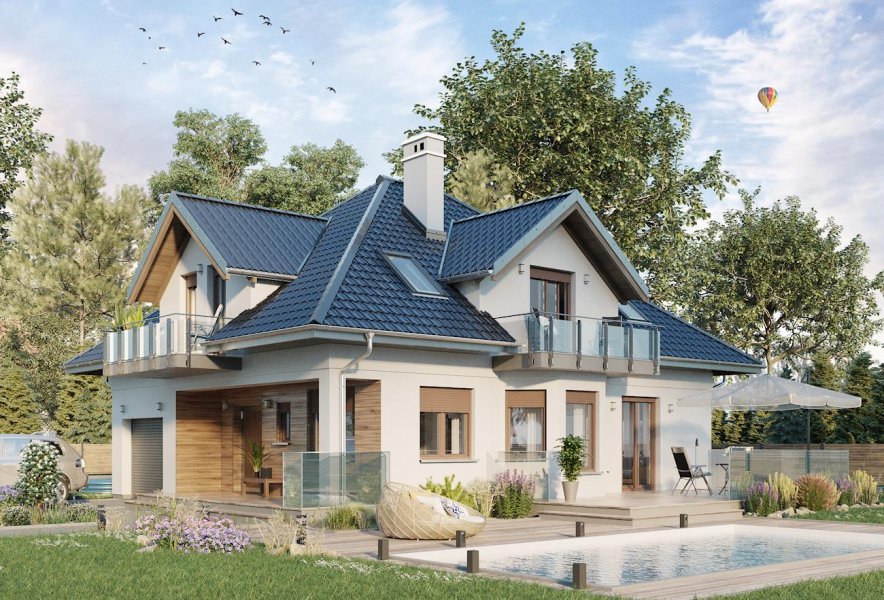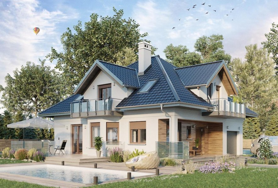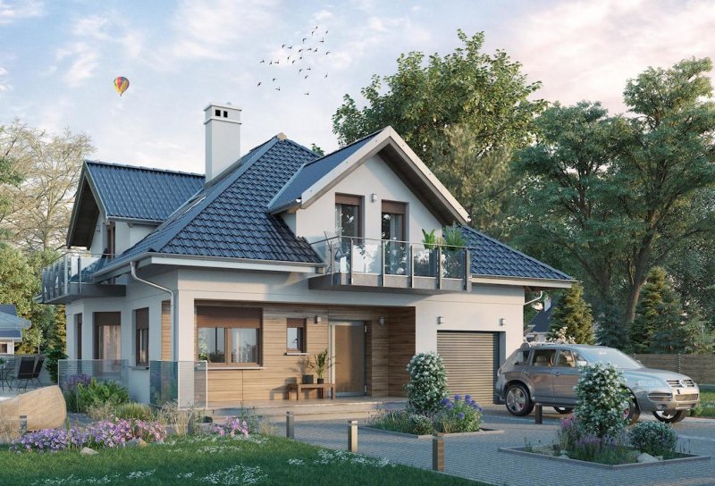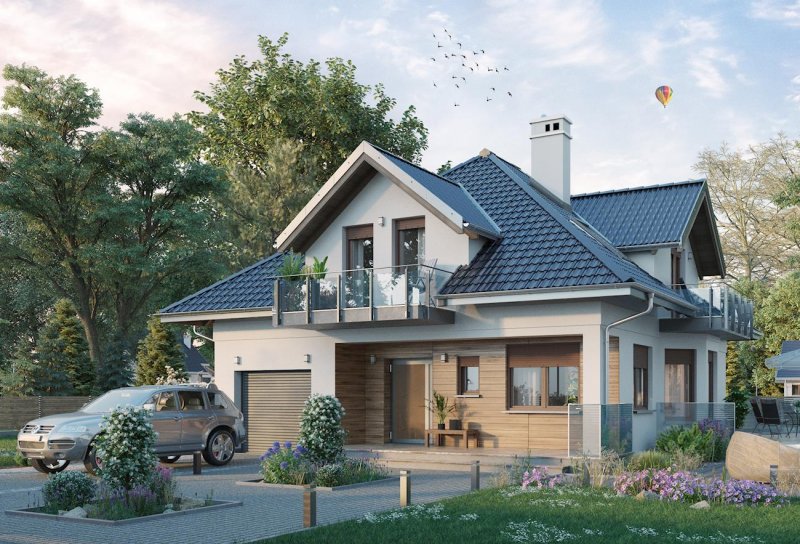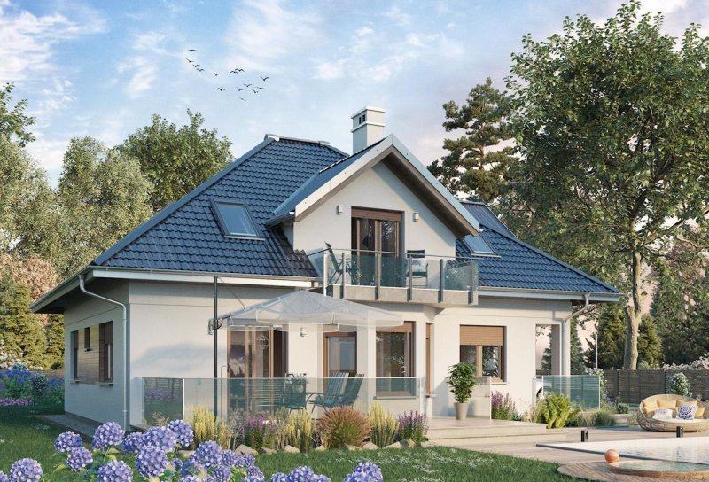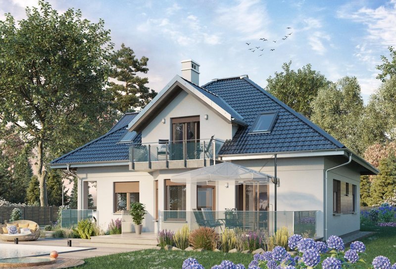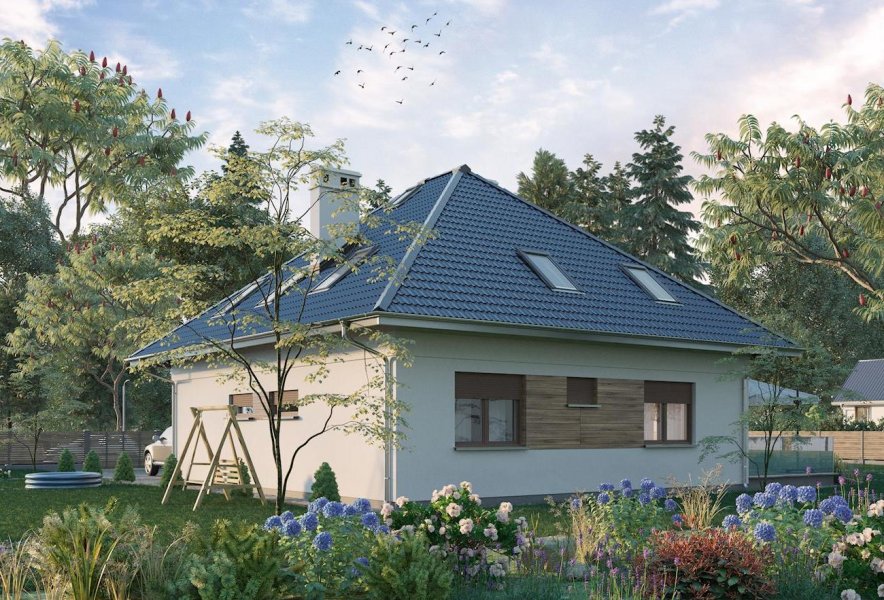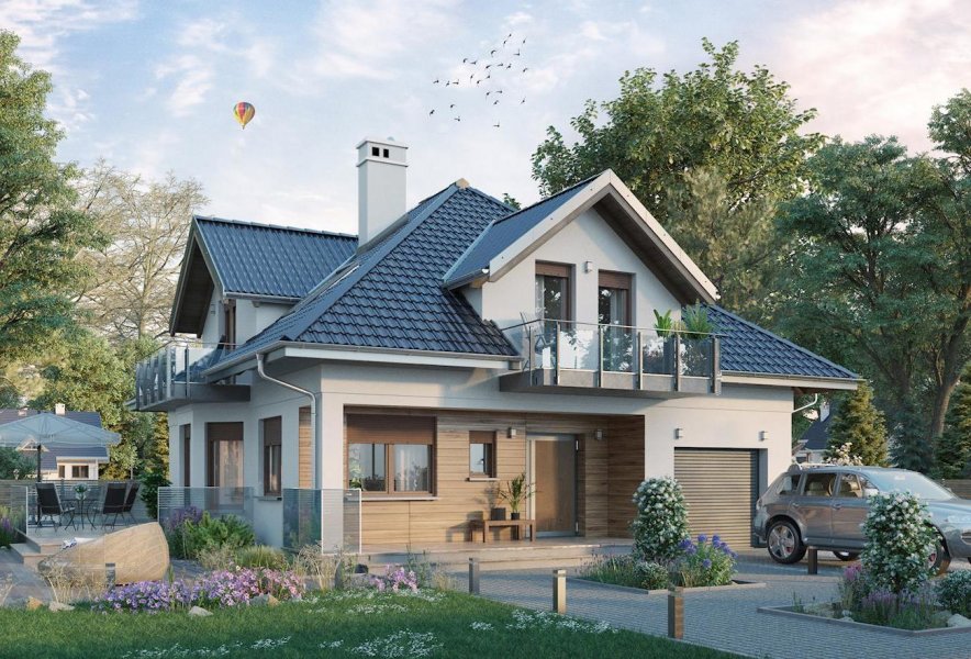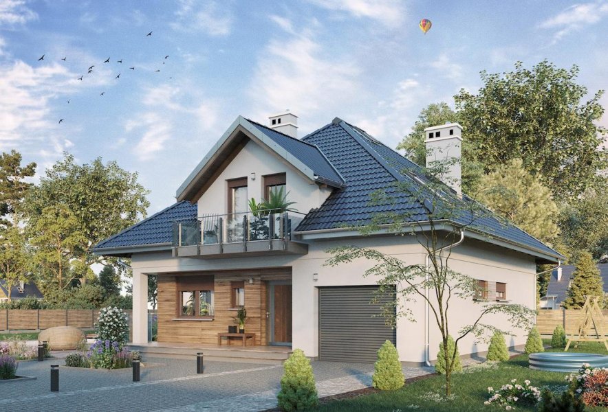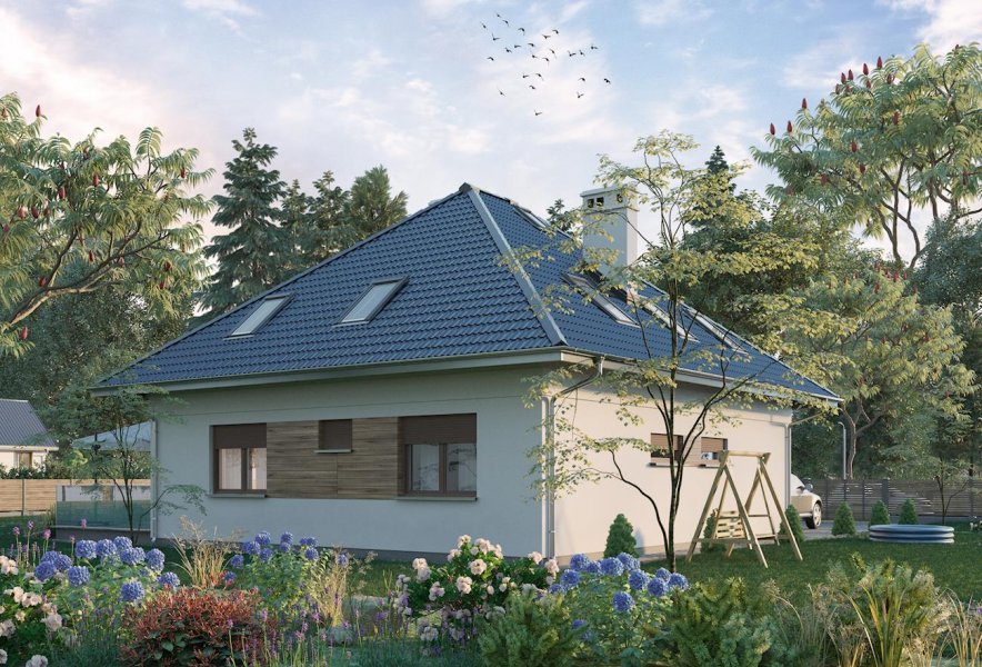 Na parterze , w węższym trakcie rozmieszczono garaż, kotłownię, małą łazienkę i gabinet. Trakt części dziennej składa się z kuchni wyposażonej w spiżarnię i pokoju dziennego. Obie części łączy komunikacja na osi wejścia głównego złożona z przedsionka, holu z dużą szafą i klatki schodowej. Poddasze zajmują trzy duże sypialnie dla czterech osób, pokój kąpielowy z aneksem pralni i dostępna z przedpokoju garderoba. Prymus jest najbardziej udaną koncepcją Archetonu wśród projektów domów średnich, z czterospadowym dachem. Jeszcze trzy domy oparte na jego pomyśle wchodzą w skład rodziny projektów. Rzut Prymusa, zbliżony do kwadratu, jest dość zwarty, z wbudowanym garażem. Wysunięty ku frontowi wjazd osłania wejściową wnękę pod głębokim okapem wspartym na słupie. Na parterze kuchnia ze spiżarnią i wyjątkowo duży salon z kominkiem tworzą otwartą przestrzeń. Garaż z kotłownią, łazienką i z gabinetem składają się na osobny trakt, oddzielony od pokoju dziennego strefą komunikacji. W holu jest dużo miejsca na obszerną szafę ubraniową. Wygodna klatka schodowa prowadzi na poddasze do trzech sypialni. Jest to przestrzeń z dużą łazienką, połączoną z pralnią oraz z garderobą. Wyraźna różnica między powierzchnią użytkową, a netto pomieszczeń wynika z kształtu dachu. Dlatego zaproponowano duże lukarny, podnoszące komfort mieszkania. Akcentują one jednocześnie front budynku i ryzalit z jadalnią. Rozbudowany dach równoważy prostotę rzutu i sprawia, że projekt domu Prymus jest rozwiązaniem kompromisowym miedzy energooszczędnym, a malarskim charakterem bryły.