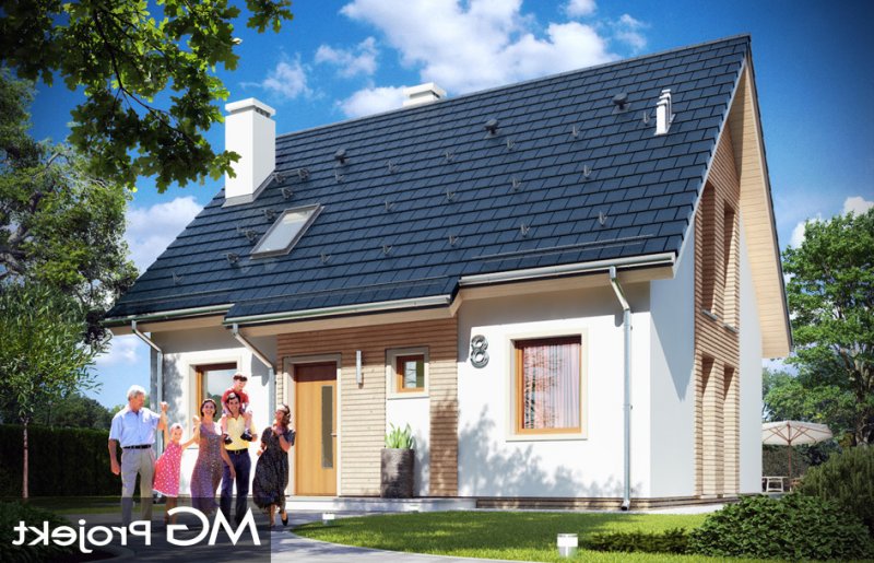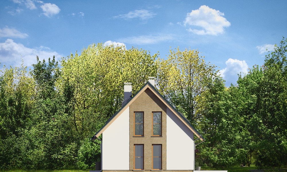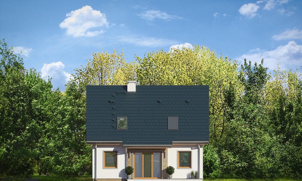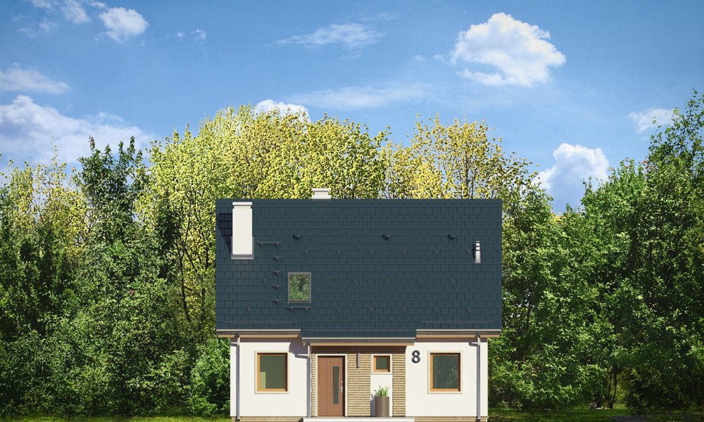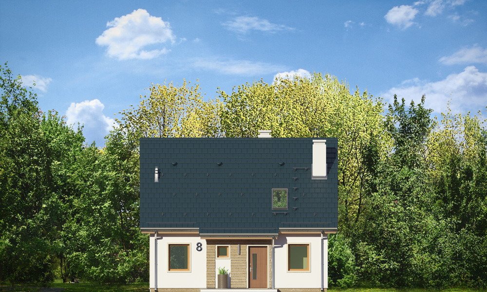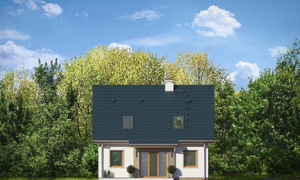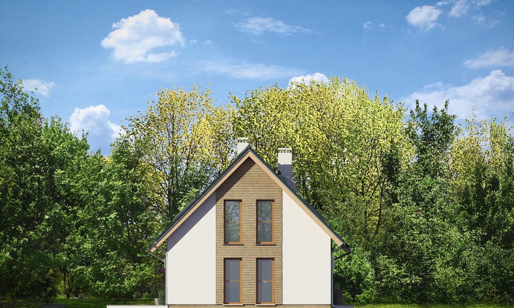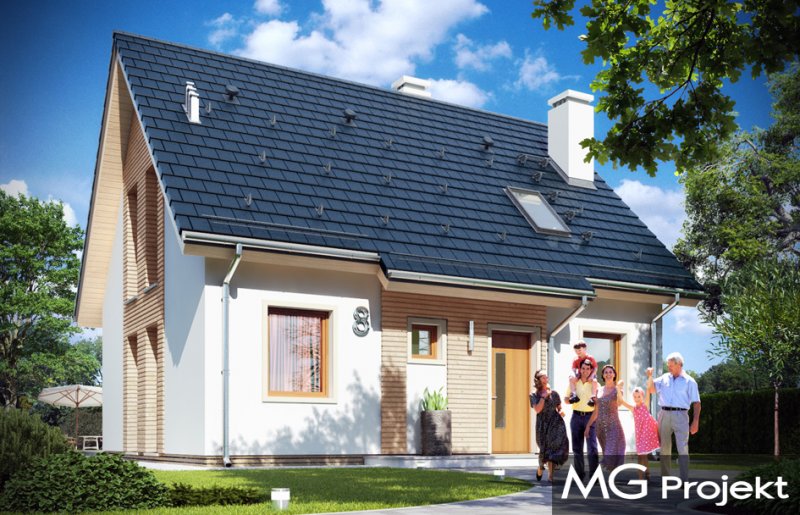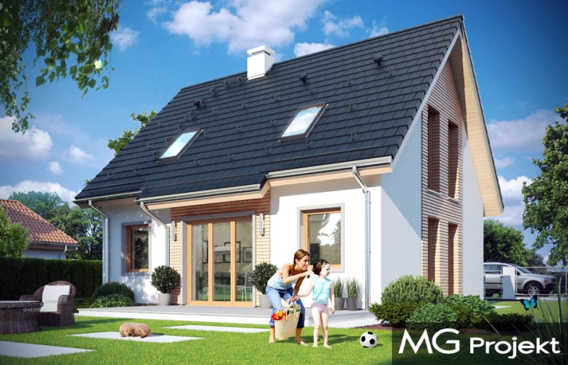 Przygoda 2 to sympatyczny dom dla cztero-pięcioosobowej rodziny - parterowy, z poddaszem użytkowym, o zwartej prostokątnej bryle przykrytej dwuspadowym dachem. Prosta elegancja domu i jego funkcjonalność idą w parze z energooszczędnością i nowoczesnością. Kształt domu, jego proporcje od razu przywołują obraz „małego białego domku”, takiego domku z kominem - z dziecięcych wyobrażeń. Budowa domu to wielka przygoda. Dlaczego nie zdecydować się na nią z naszą „Przygodą” ;). Proporcjonalna symetryczna bryła wpasuje się w każde otoczenie. Nowoczesne materiały i kolorystyka budynku dodają domowi sznytu. Wnętrze domu mieści w sobie cztery pokoje, dwie łazienki i oddzielną kotłownię - wiele, jak na niespełna stumetrową powierzchnię. Na parterze, w tej wersji projektu mamy mamy dużą przestrzeń dzienną połączonego salonu, holu i kuchni. Na poddaszu natomiast – trzy sypianie z łazienką. Wnętrze jest ustawne i funkcjonalne. Konstrukcja domu jest bardzo prosta i przejrzysta - będzie łatwa w budowie i – co najważniejsze - rozsądna kosztowo. Bardzo dobre ocieplenia ścian, podłóg i dachu powodują, że dom jest energooszczędny. W łatwy sposób można go dostosować do standardu NF40. Niewielka powierzchnia użytkowa domu pozwala na zaliczenie projektu do programu MDM. Zapraszamy !