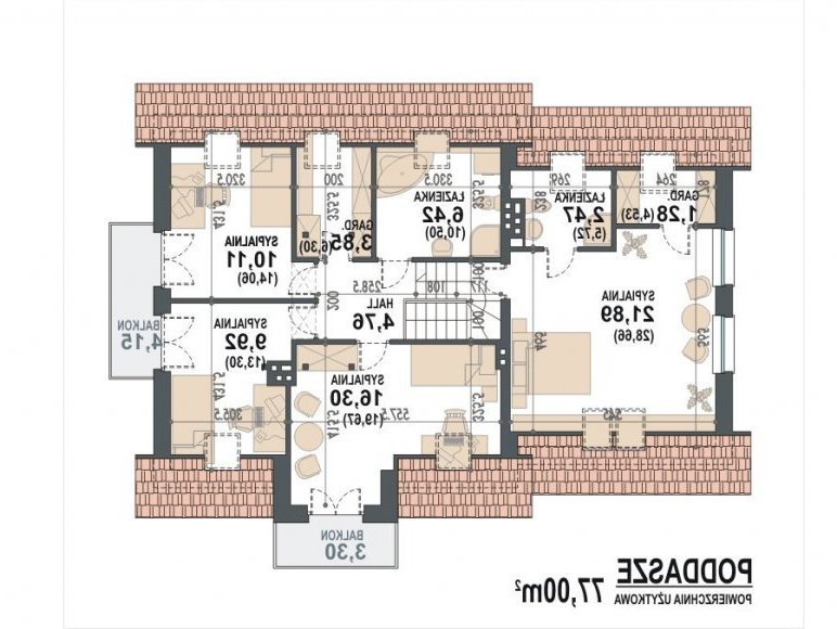 Ten niewielki gabarytowo dom spełnia wszelkie funkcje nawet dla 6-osobowej rodziny. W przypadku mniejszej liczby domowników powierzchnię poddasza można dowolnie zagospodarowywać poprzez łączenie pomieszczeń lub zmianę sposobu użytkowania np. na pokój rekreacyjny, gabinet, pralnię czy suszarnię.