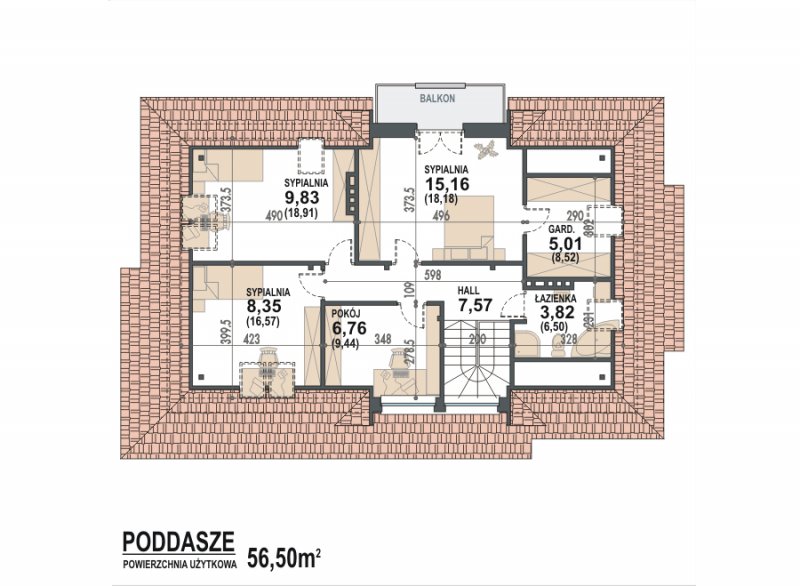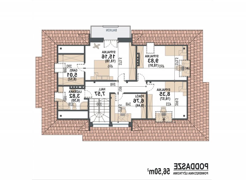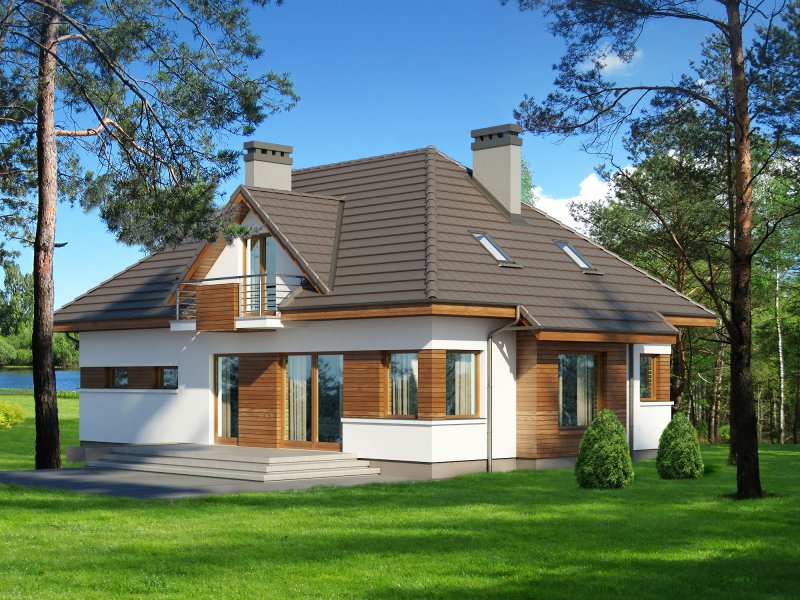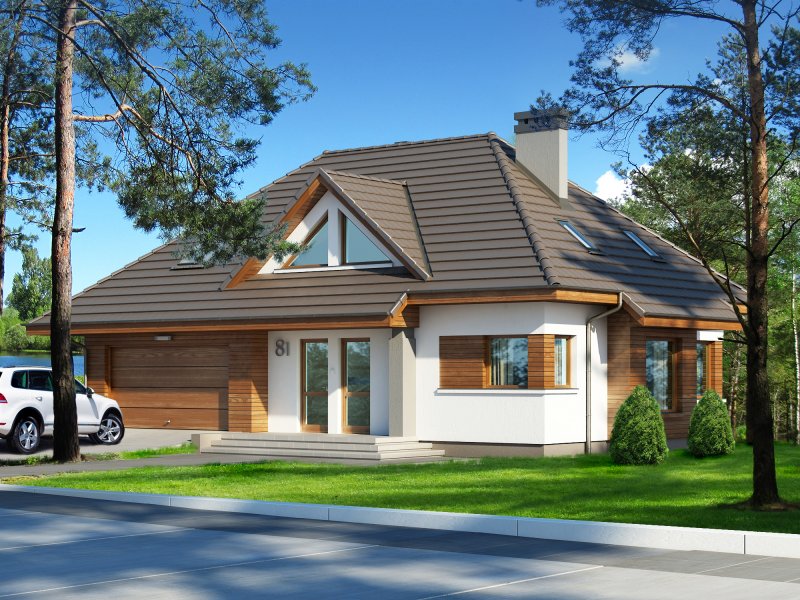 - dach czterospadowy o konstrukcji drewnianej, pokryty dachówką ceramiczną, cementową lub blachodachówką