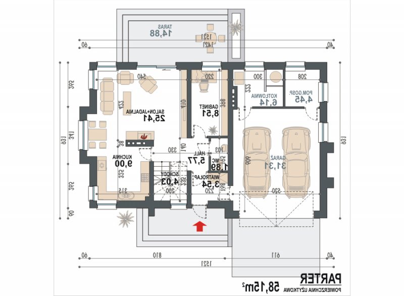- Min. wymiary działki 22.81x17.31 m