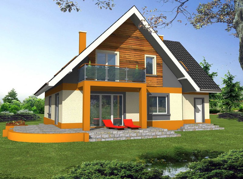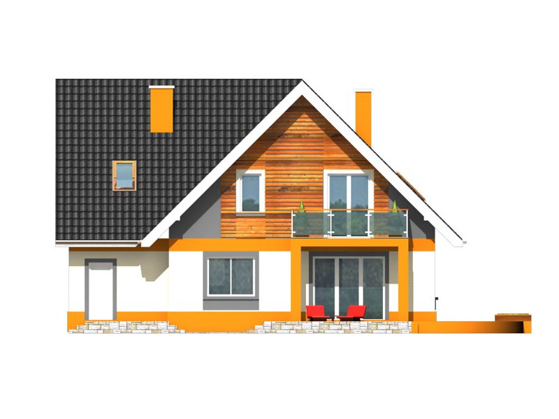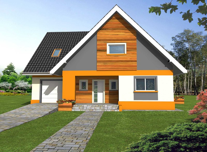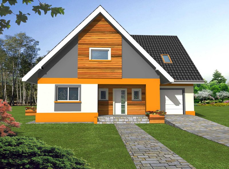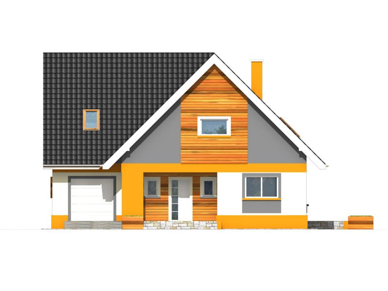 Rino to bardzo wygodny, reprezentacyjny dom parterowy z użytkowym poddaszem i wbudowanym garażem jednostanowiskowym.
