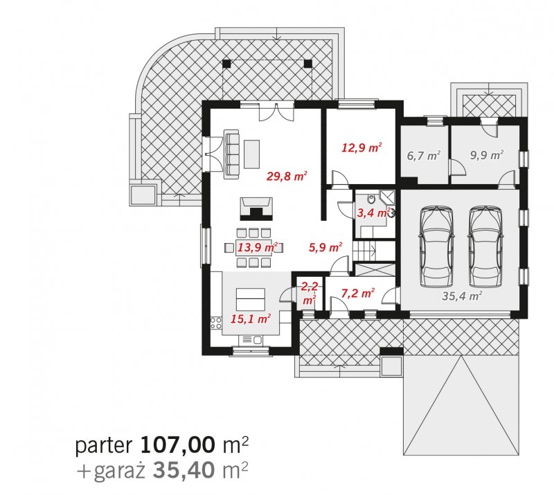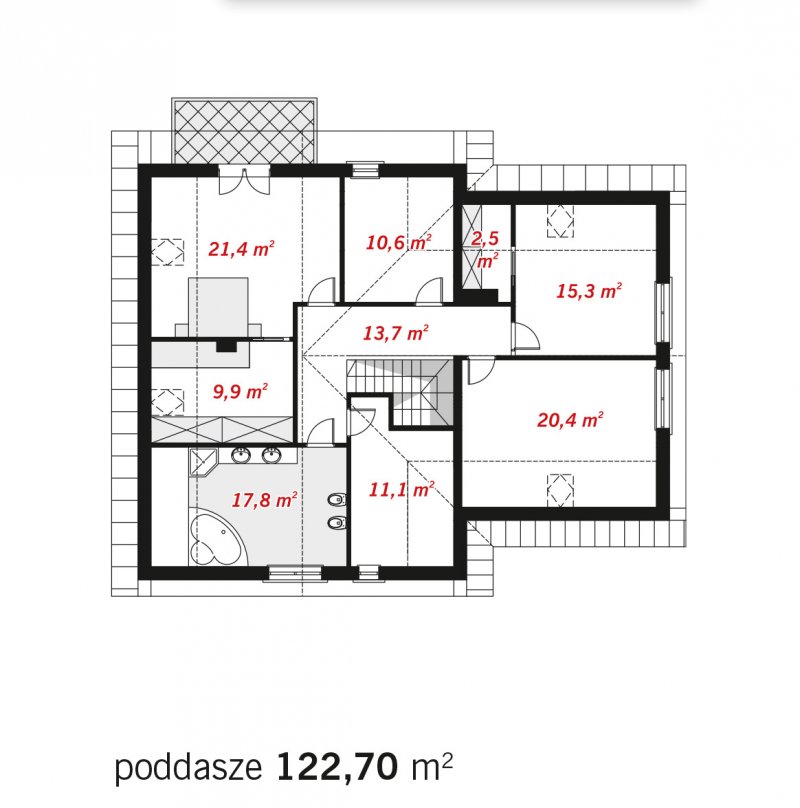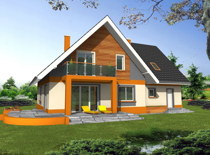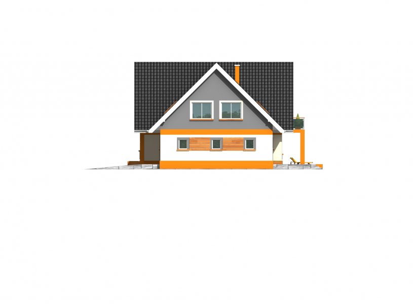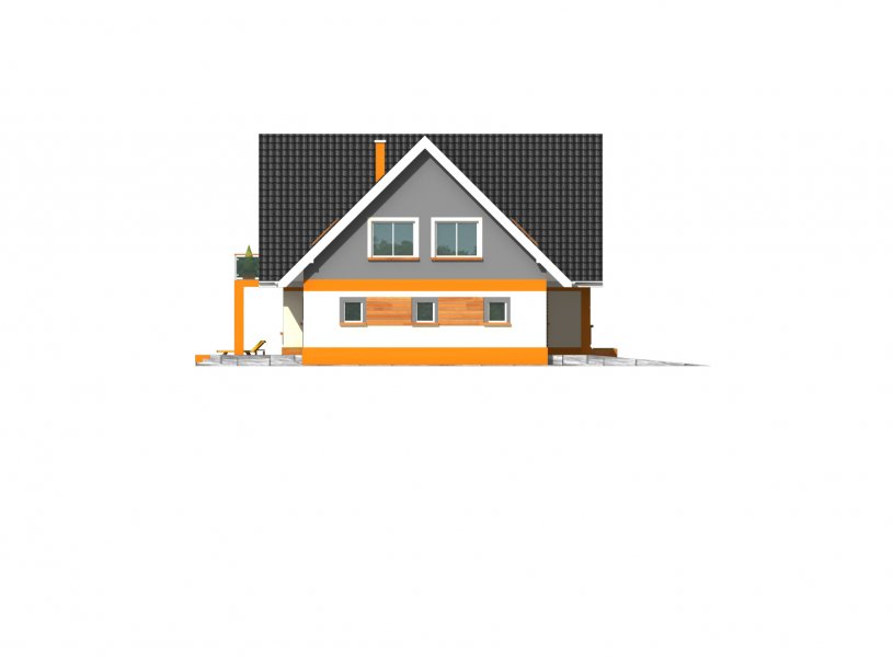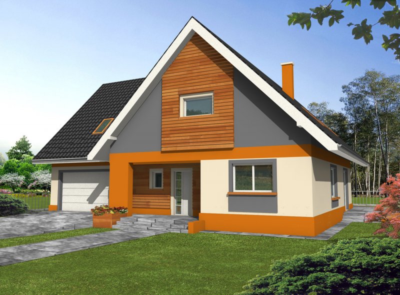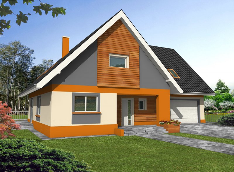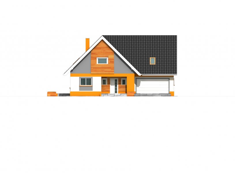 Bardzo wygodny, reprezentacyjny dom parterowy dom z użytkowym poddaszem i wbudowanym garażem dwustanowiskowym. Na parterze znajduje się duży salon kominkowy, doświetlona oknami jadalnia, duża kuchnia, hall, gabinet, łazienka oraz kotłownia z dużym pomieszczeniem gospodarczym - zlokalizowane za garażem dwustanowiskowym. Na poddaszu znajdują się trzy bardzo duże i wygodne sypialnie, w tym dwie z własną garderobą, pokój fitness, duża łazienka oraz pomieszczeni pralni-suszarni. Wszystkie sypialnie i łazienka są dobrze doświetlone oknami w ścianach szczytowych, największa z nich ma własny duży balkon wychodzący na część ogrodową.