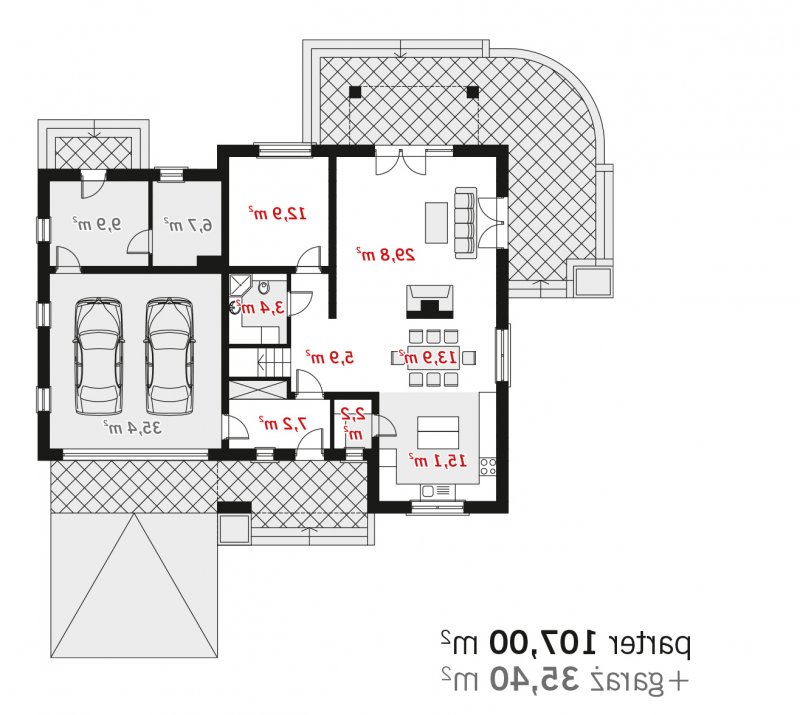Istnieją inne wersje projektu, m.in. Rino- z garażem jednostanowiskowym.