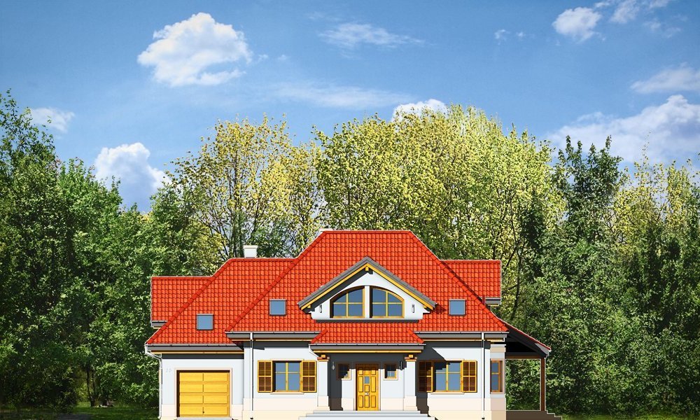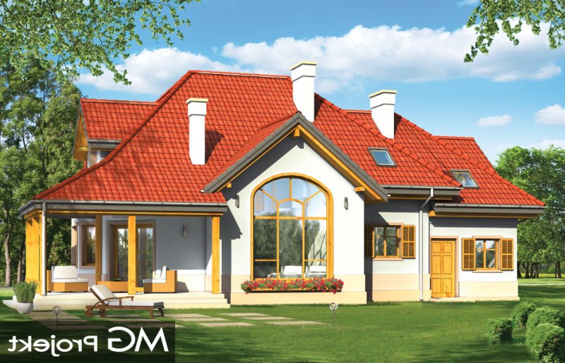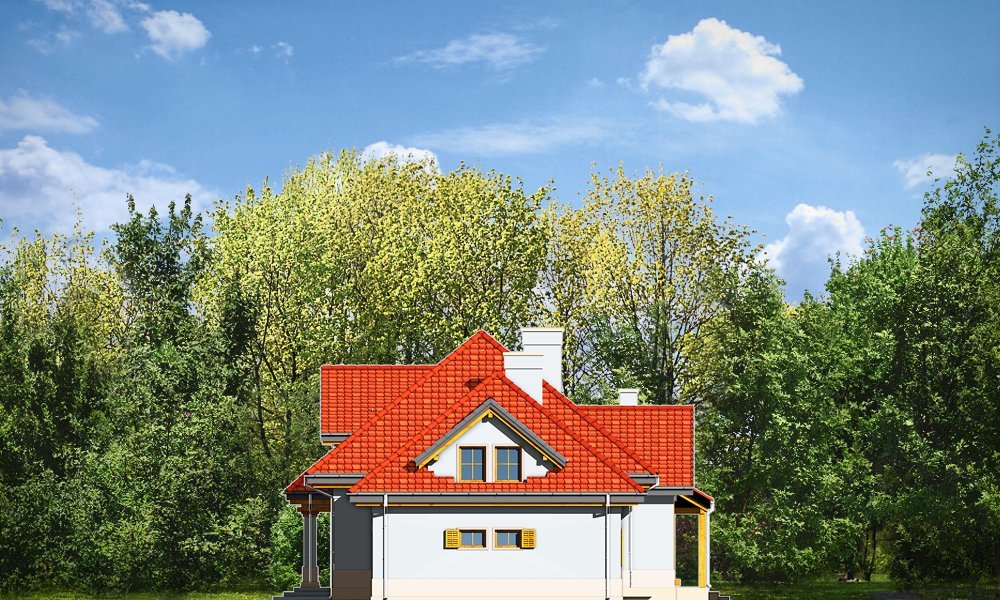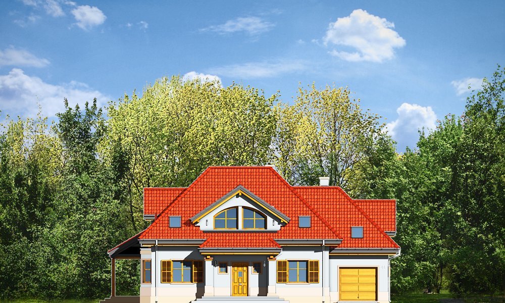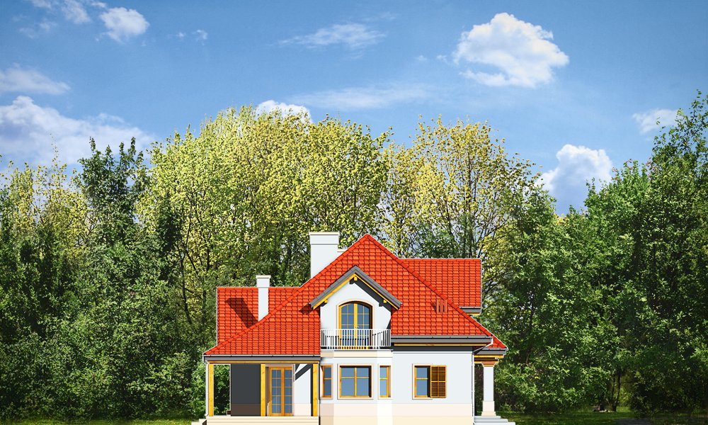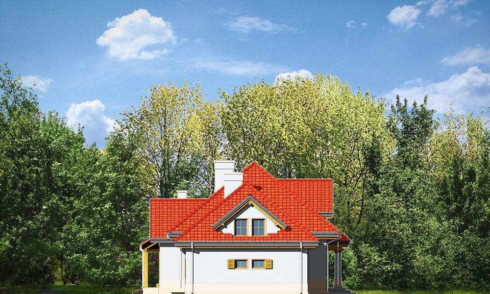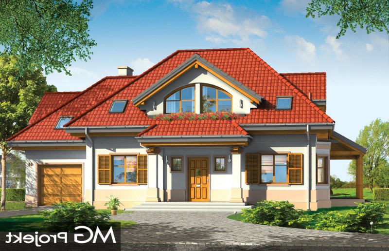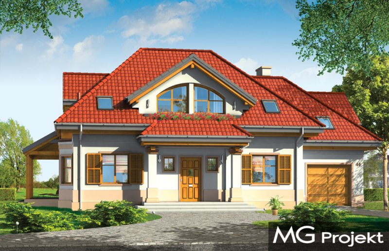Rubin 2 to wariantowa wersja popularnego projektu Rubin - tym razem zmniejszona, z jednostanowiskowym garażem. Projekt domu przeznaczony jest dla cztero-pięcioosobowej rodziny. Parterowa bryła z poddaszem użytkowym, składa się z części mieszkalnej i dobudowanego z boku garażu. Całość przekryta jest wielospadowym dachem, z dużymi lukarnami na każdej elewacji. Spokojna podmiejska architektura domu, z ciekawymi detalami, jak wykusze, ganki z kolumnami, czy łukowe okna, łączy się z funkcjonalnie zaprojektowanym wnętrzem budynku. Szczególną atrakcją bryły jest duża lukarna frontowa z gankiem wejściowym i kolumnami, duży podcień ogrodowy, gdzie pod zadaszeniem można schronić się przed deszczem lub upalnym słońcem, oraz wielkie dwukondygnacyjne okno salonu, otwierające wnętrze na ogród. Wnętrze parteru to przede wszystkim otwarta przestrzeń dzienna, z salonem, jadalnią i holem. Salon częściowo otwarty jest na antresolę poddasza, dzięki czemu domownicy będą mogli cieszyć się zwiększoną przestrzenią pokoju dziennego. Na parterze zaplanowano też kuchnię, dodatkowy pokój - gabinet lub na przykład sypialnię gościnną, oraz kotłownię i garaż z zapleczem ogrodowym. Na poddaszu zmieszczono cztery sypialnie z garderobami i szafami wbudowanymi, dużą łazienkę i pralnię-suszarnię. Z holu - antresoli na poddaszu otwiera się przez wysokie okno imponujący widok na salon pod spodem i ogród. Projekt dostępny jest też w odbiciu lustrzanym.