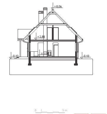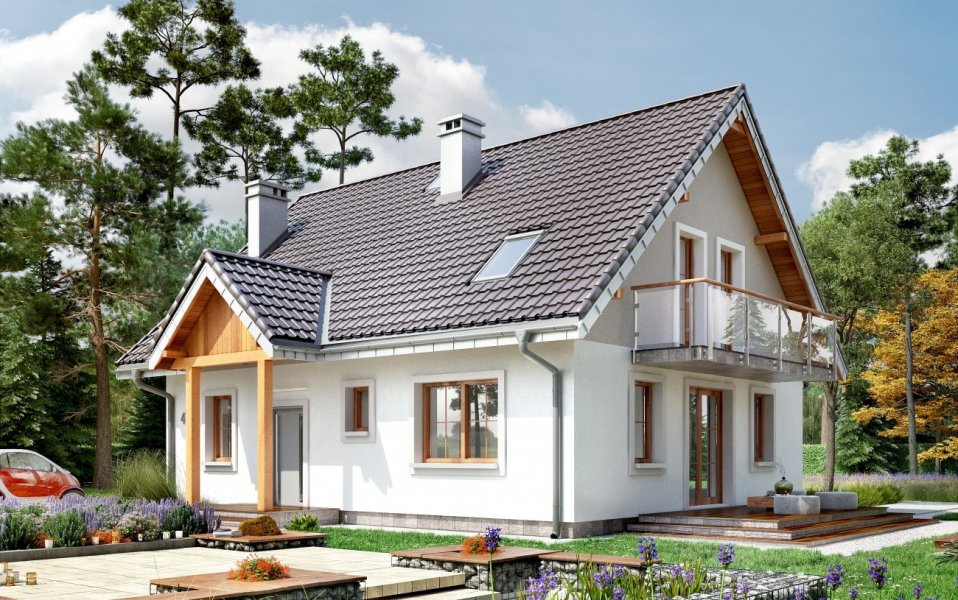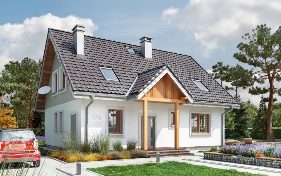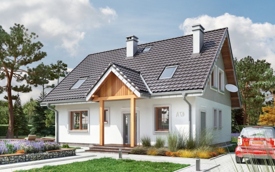 Projekt domu Sambor ma średnią wielkość w Rodzinie Sambora, w której skład wchodzi kilka projektów niewielkich, parterowych domów z użytkowym poddaszem. Jest to grupa koncepcji bardzo ekonomicznych w realizacji, z energooszczędnym, zwartym rzutem i dwuspadowym, prostym dachem. Układ kompletnego mieszkania na parterze (dodatkowy pokój przy salonie + pełna łazienka) i kolejnych pokoi na poddaszu ułatwia etapowanie budowy. Schemat konstrukcyjny jest nieskomplikowany i czytelnie rozdziela funkcje mieszkania. Stosunkowo duża kotłownia z osobnym wejściem daje swobodę wyboru sposobu ogrzewania budynku. Wielkość rzutu w projekcie domu Sambor pozwala na wyposażenie kuchni spiżarnię przy sieni. Przestrzeń na poddaszu umożliwia wygospodarowanie trzech sypialni z dużą łazienką. Prosty detal decyduje o elegancji architektury wszystkich wariantów Sambora – ich znakiem rozpoznawczym jest drewniany, niewielki ganek wejściowy. Domy z Rodziny Sambora proponują otwartą, nowoczesną strefę dzienną. Z wyjątkiem wersji Mobil i Neo nie przewidują w swojej bryle garażu.