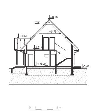 Ściany Zewnętrzne: bloczki z betonu komórkowego SOLBET Optimal gr. 24 cm + wełna mineralna FASROCK MAX lub FRONTROCK MAX gr. 12 cm (na parterze) i gr. 15 cm (na poddaszu);