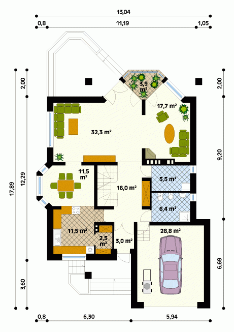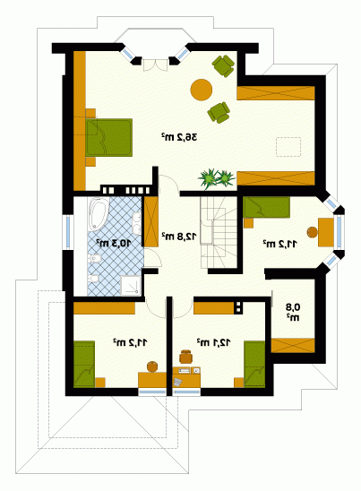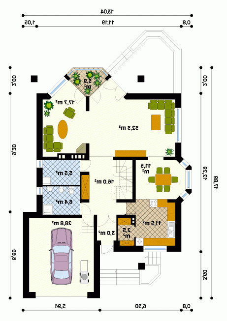 Dom jednorodzinny, wolnostojący, parterowy z użytkowym poddaszem, niepodpiwniczony. Rozbudowana część dzienna i wygodne sypialnie na poddaszu.
