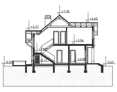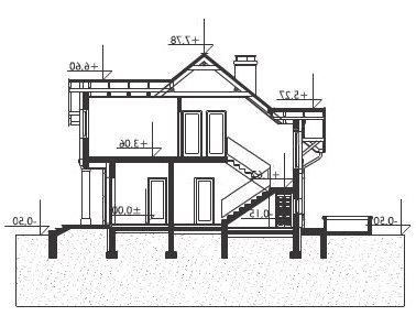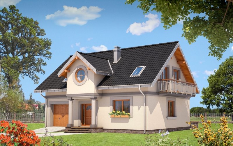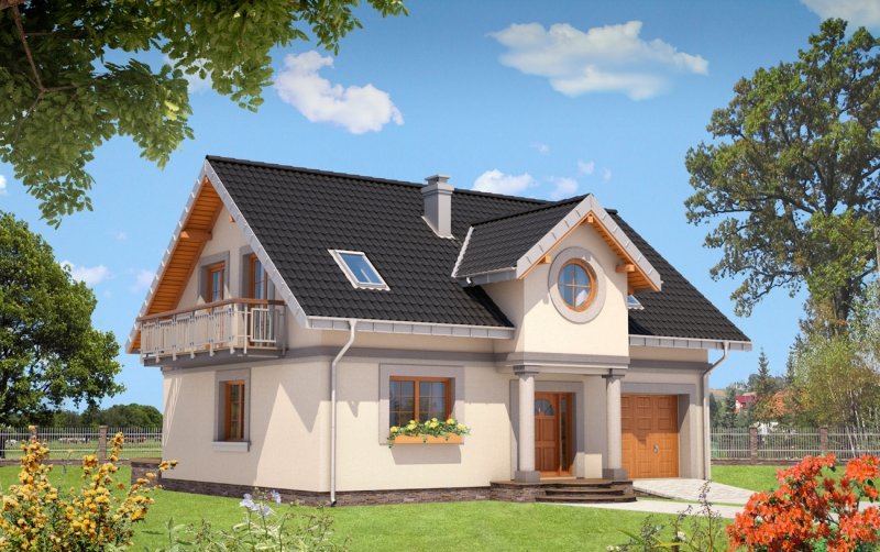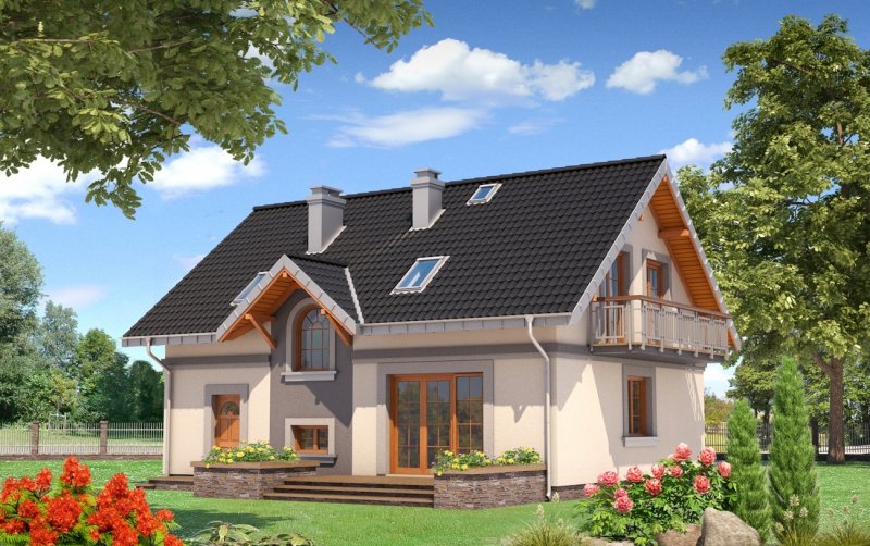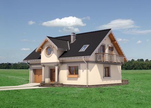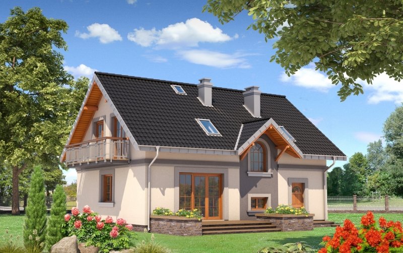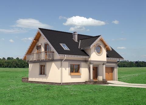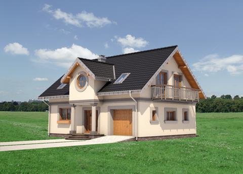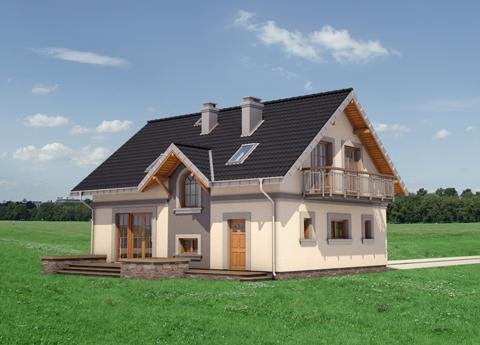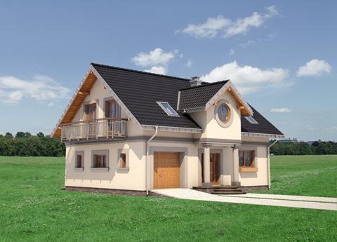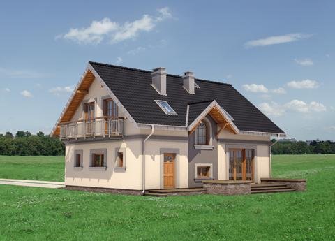 Średni wielkością w Rodzinie Skarbka – projekt domu Skarbek Mini prezentuje wszelkie cechy taniego, funkcjonalnego domu. Zwarty prostopadłościan mieści mieszkanie i garaż - wszystko pod dwuspadowym dachem z kalenicą równoległą do drogi dojazdowej. Przy niewielkiej powierzchni zaproponowano na parterze otwarty na hol pokój dzienny i część gospodarczą. Kuchnia pozwala na wydzielenie spiżarni, pod schodami praktyczny schowek powiększa kotłownię za garażem, w małej łazience mieści się prysznic, a w sieni – szafa. Podobnie starannie rozplanowano strefę prywatną. Na poddaszu są cztery sypialnie i wygodna łazienka z pięknym oknem, dostępne, bez strat powierzchni, z niewielkiego przedpokoju. Projekt domu Skarbek Mini, tak jak Skarbek i Skarbek Karo, proponują historyzujący detal architektoniczny. Zamiast zadaszonej wnęki utworzonej przez wysunięty garaż (jak w nowocześniejszych stylistycznie wariantach) wejście główne akcentuje kolumnowy fronton z okrągłym doświetleniem łazienki poddasza. Kotłownia jest przez to nieco mniejsza ale elewacja mniej rozbudowana, co rekompensuje w bilansie strat ciepła bardziej dekoracyjnie rozwiązanie dachu.
