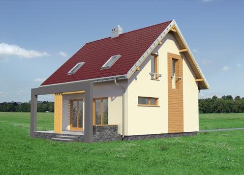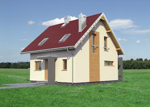 W Rodzinie Smyka znalazło się kilka projektów najmniejszych i najprostszych domów parterowych z użytkowym poddaszem. Projekt domu Smyk Neo tak, jak wersja As jest jednym z bardziej oszczędnych rozwiązań z dostawionym garażem i kalenicą dwuspadowego dachu równoległą do drogi dojazdowej. Zbliżony do kwadratu, energooszczędny rzut dzieli częściowo ściana nośna oraz kominek wyznaczając po jednej stronie strefę wejścia i komunikacji z kuchnią i wc oraz szeroki salon z jadalnią po drugiej. Na poddaszu są trzy pokoje i łazienka. Jedną z elewacji bocznych urozmaica długi balkon otwierany z dwóch sypialni. W wizualizacji zaproponowano pełną balustradę nawiązującą nowoczesną forma do daszku nad wejściem frontowym. Najbardziej zbliżony powierzchnią do projektu domu Smyk Neo jest w rodzinie Smyk As, który jednakże proponuje dostawiony po drugiej stronie garaż oraz bardziej tradycyjny detal architektoniczny. Podobny rozkład, zróżnicowane powierzchnie, obrócony dach, bardziej rozbudowaną bryłę, inne detale lub wariant bez garażu, znaleźć można wśród pozostałych projektów z Rodziny Smyka.