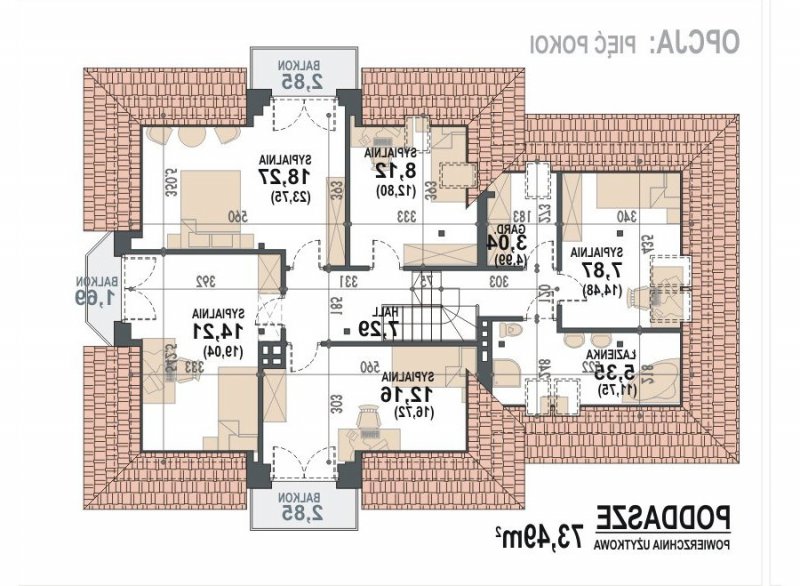 - Kąt nachylenia dachu 42.00°