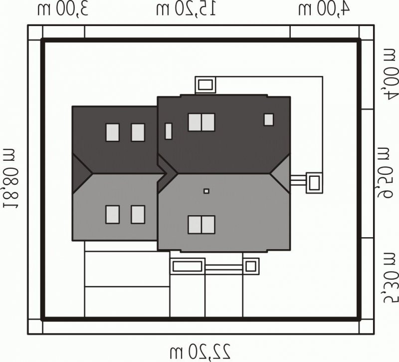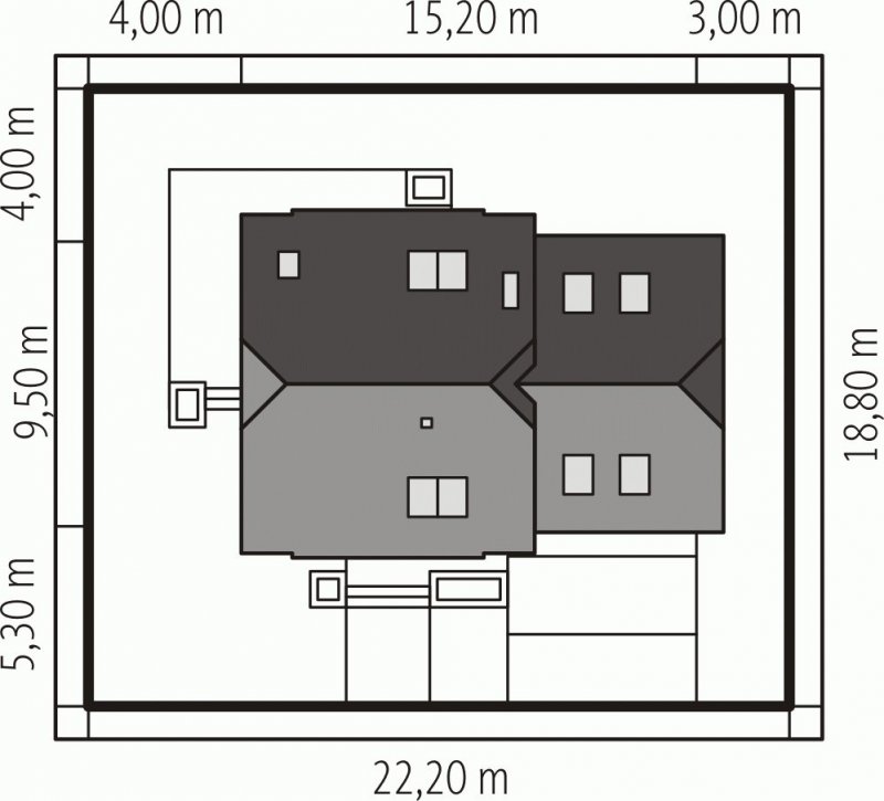 - Min. wymiary działki 22.20x18.80 m