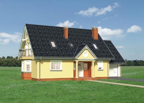 Dom parterowy z użytkowym poddaszem, z garażem.