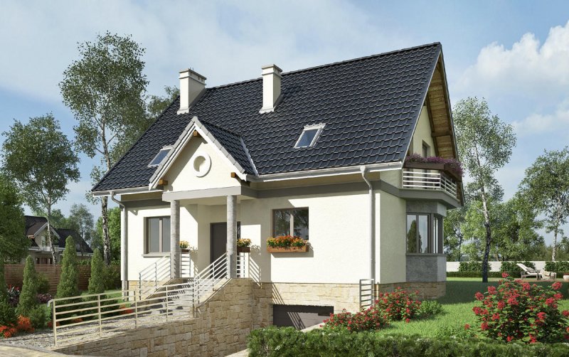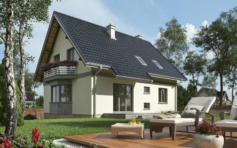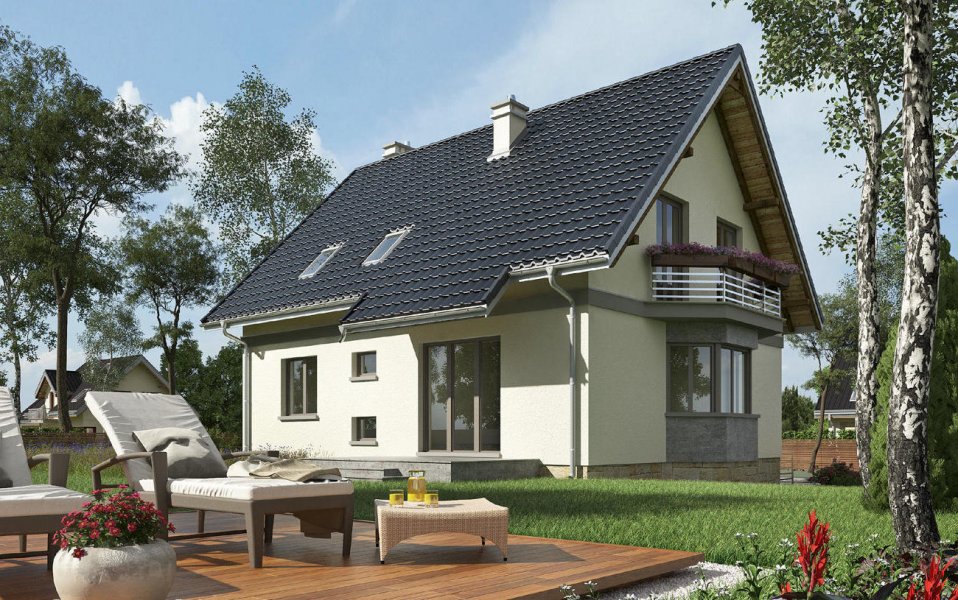Do Rodziny Sonii należą projekty małych domów parterowych z użytkowym poddaszem i z garażem, na rzucie zwartego prostokąta. Całą rodzinę wyróżniają dwa detale architektoniczne: wejściowy ganek, najczęściej z daszkiem na słupkach lub kolumnach oraz ryzalit na planie ośmiokąta z jadalnią, zwieńczony balkonem w jednej ze ścian bocznych. Szczególną cechą projektu domu Sonia Midi (i także podpiwniczonej, choć sporo mniejszej Sonii Mini) jest rzadko spotykany układ funkcjonalny parteru. Oprócz całkowicie otwartej kuchni i salonu z kominkiem, przewiduje on aż dwa dodatkowe, niewielkie pokoje z łazienką. Oddzielono je od strefy dziennej traktem wejścia frontowego i komunikacji. Bardziej prywatną strefę nocną zaprojektowano podobnie we wszystkich pozostałych wersjach rodziny: z dużą łazienką i z garderobą na drugiej kondygnacji pod dwuspadowym dachem. Sypialnie doświetlono ekonomicznie i energooszczędnie – bez użycia lukarn. Projekt domu Sonia Midi ma garaż, dużą kotłownię i pomieszczenia gospodarcze w zajmującej pełen plan budynku piwnicy. Od projektu Sonia Midi Lux odróżnia go jedynie rodzaj betonu komórkowego użytego na ściany.