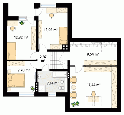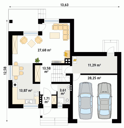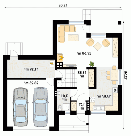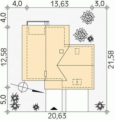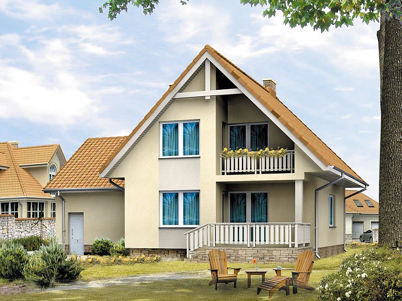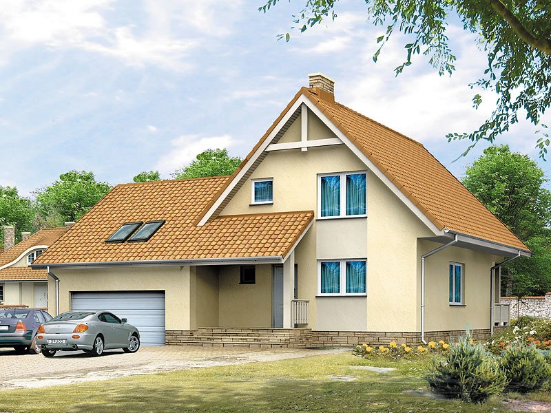 Wolno stojący dom jednorodzinny, niepodpiwniczony. Powiększona o dodatkowe stanowisko garażowe wersja domu –SOPRAN 2–. Dom ekonomiczny w budowie i utrzymaniu. Prosty, czytelny, funkcjonalny układ. Budynek można podpiwniczyć.