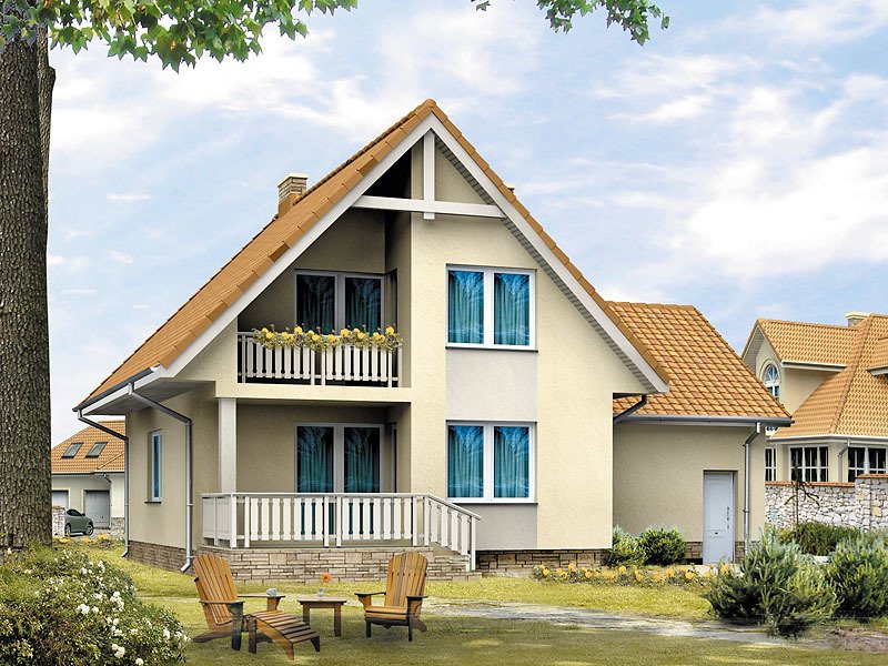 Ściany: 2-warstwowe - YTONG 36,5 cm + styropian, Stropy: żelbetowe, wylewane, Dach: dachówka, kąt nachylenia 45°