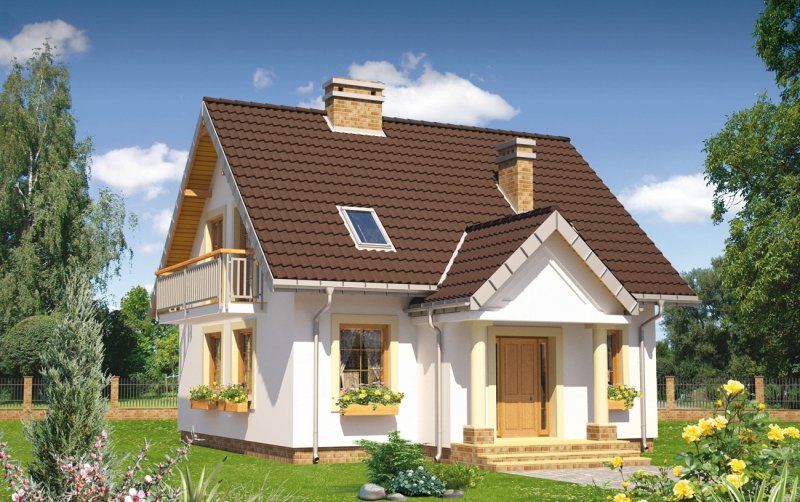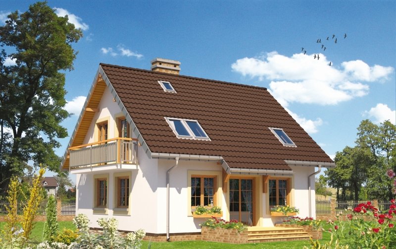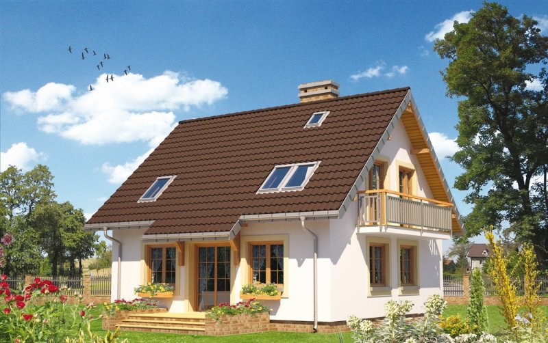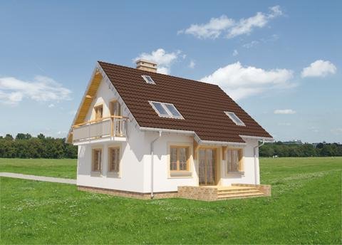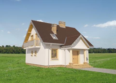 Salon o powierzchni przekraczającej 30 m2 to wyjątkowe rozwiązanie dla małych domów z zakresu 100-115 m² p.u. Projekty domów parterowych z użytkowym poddaszem z Rodziny Stasia pokazują takie właśnie rozwiązanie. W projekcie domu Staś Alter, mniejszym w rodzinie, przy holu z nieobudowanymi schodami zlokalizowano jeszcze otwartą kuchnię, sporą kotłownię i łazienkę. Prosty, ekonomiczny układ konstrukcyjny, ze ścianą nośną w środku rozpiętości, przekłada się na logiczny, wygodny plan poddasza. Są tu trzy sypialnie i piękna, wyjątkowo duża łazienka - wszystkie pomieszczenia z wyjściami na balkon. Zbliżony do kwadratu rozkład Stasia, we wszystkich wersjach przekryto dwuspadowym, ekonomicznym dachem z kalenicą równoległą do drogi dojazdowej. Niewielkie rozmiary budynku oraz proporcje rzutu decydują o tym, że łatwo ustawić go na wąskiej, małej działce. Koncepcję projektu domu Staś Alter i całej jego rodziny wyróżnia także klasyczny fronton z przedsionkiem wysuniętym na taras wejściowy. Poza tym detalem, architektura budynku jest nieskomplikowana, a symetria wszystkich elewacji podkreśla zwarty, energooszczędny kształt sylwetki.