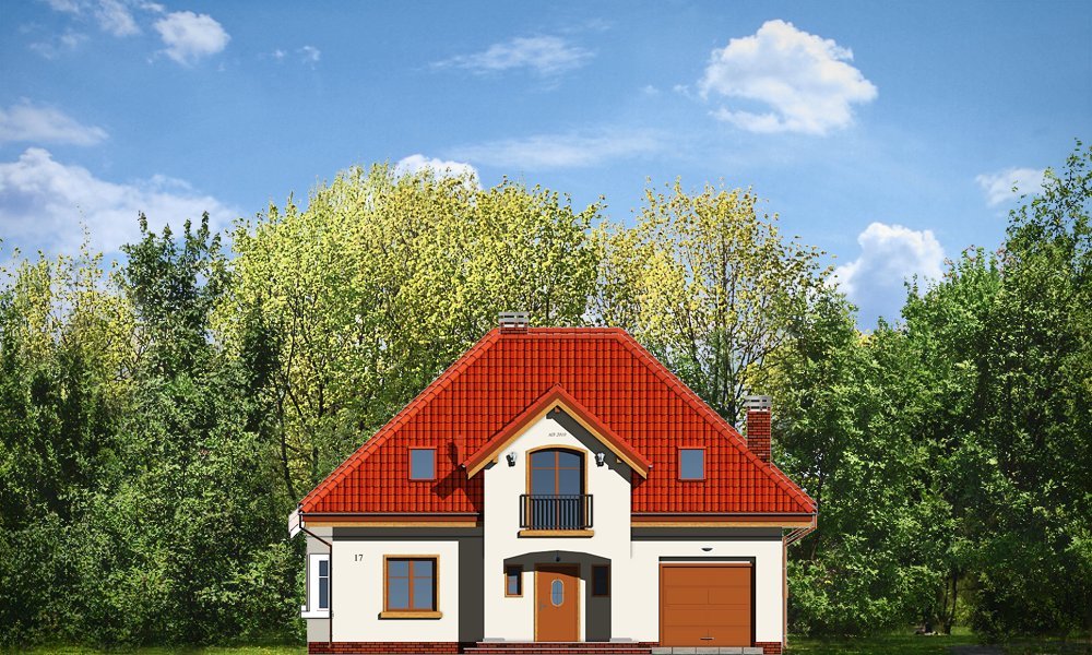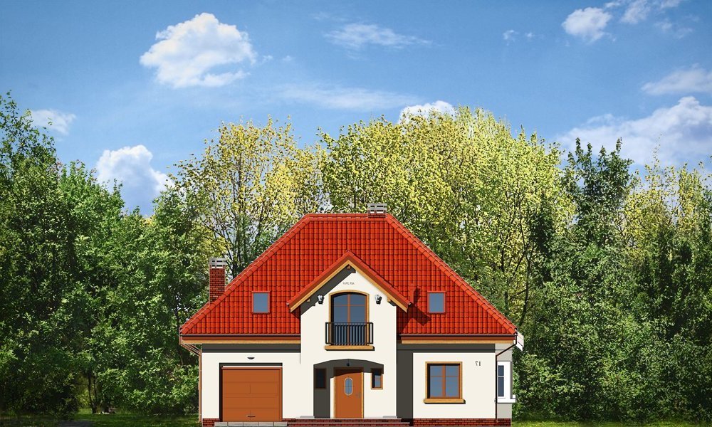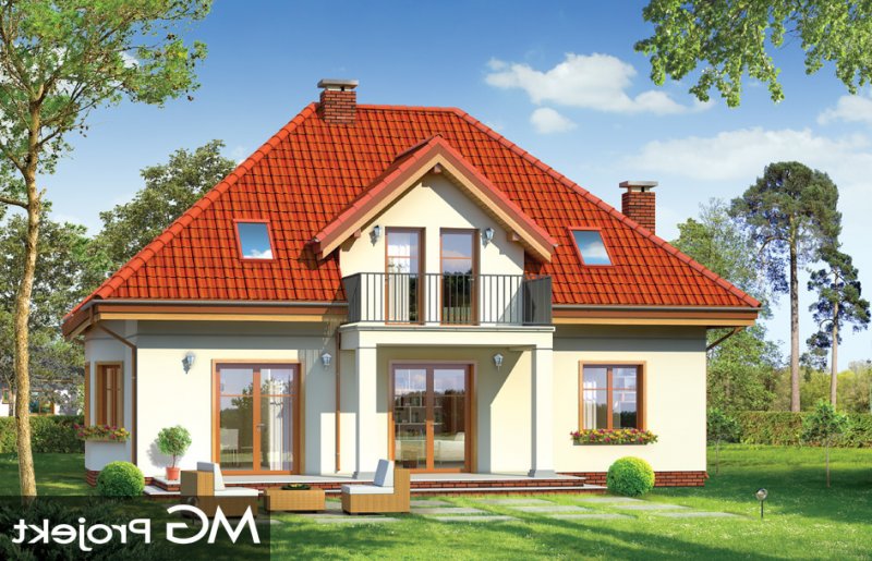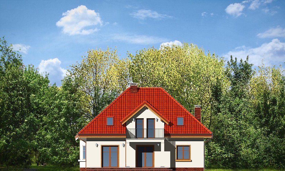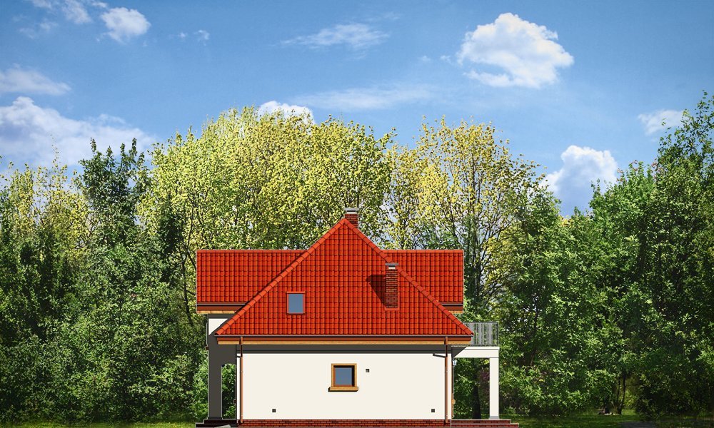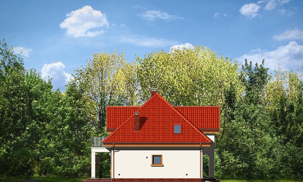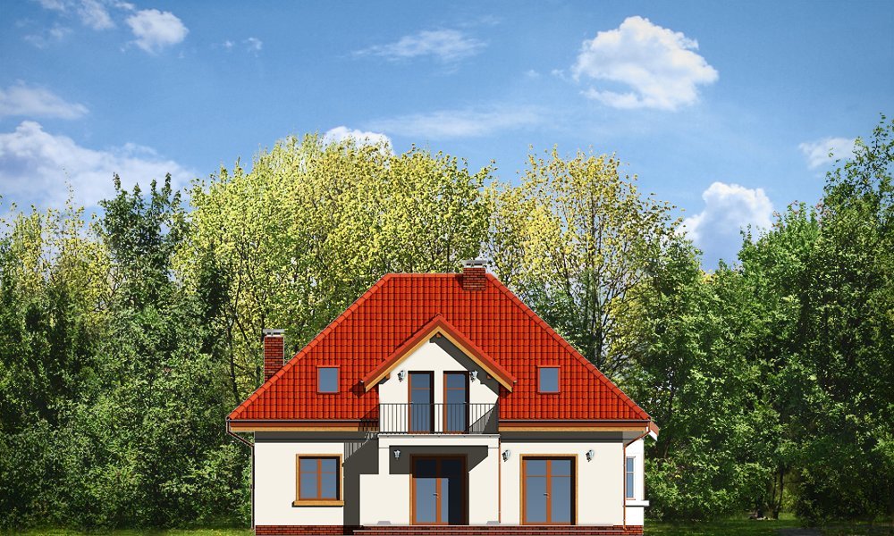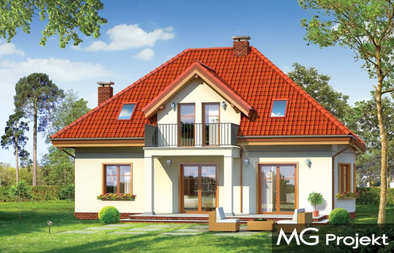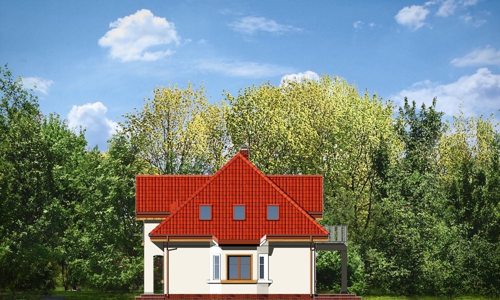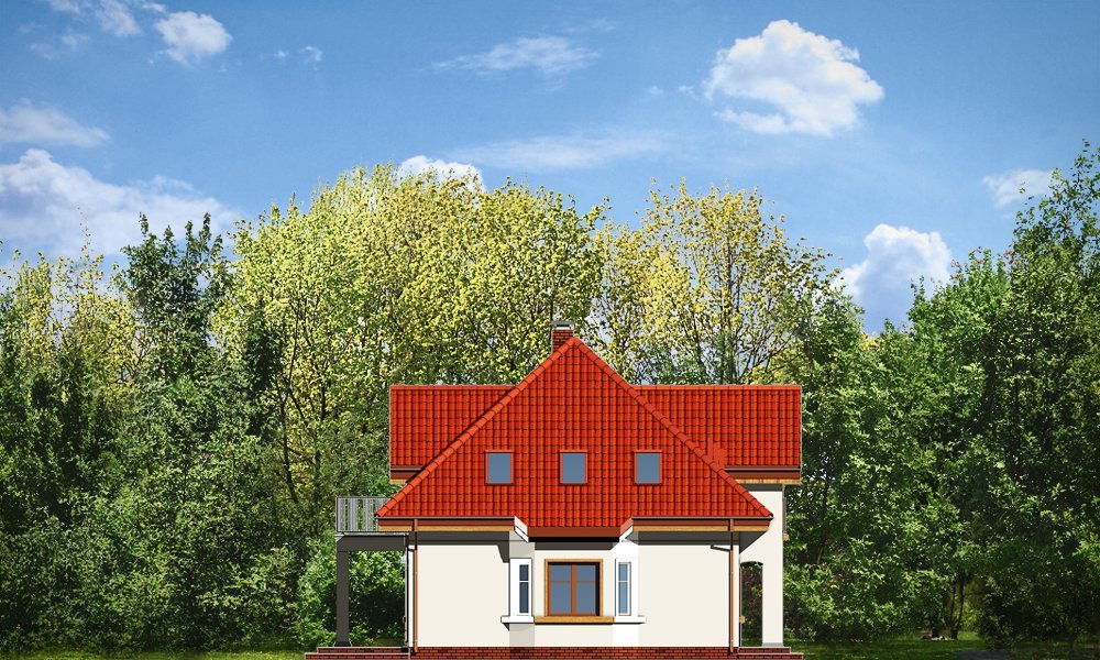 Stokrotka to uroczy budynek o prostej, klarownej bryle. Domek jednorodzinny przeznaczony dla cztero-pięcioosobowej rodziny. Dom zbudowany jest na planie prostokąta. Rzut parteru i poddasza zwieńczony jest czterospadowym dachem z symetrycznie ustawionymi lukarnami od frontu i od strony ogrodu. Frontowa lukarna połączona jest z podcieniem wejściowym na kolumienkach. Od strony ogrodu zaprojektowano częściowe zadaszenie tarasu dużym balkonem. Urok domu to jego prostota i właściwe proporcje, do tego ciekawe detale, oraz funkcjonalnie zaprojektowane, przemyślane wnętrze. Na parterze mieszkania, zaprojektowano obszerny pokój dzienny z centralnie usytuowanym kominkiem, oraz dużymi przeszkleniami na taras i ogród. Salon łączy się częściowo z półotwartą kuchnią przez aneks jadalny z wykuszem. Bardzo ładny hol z reprezentacyjnymi schodami na poddasze dopełnia wnętrze parteru. Dodatkowo w projekcie, przewidziano jeszcze część gospodarczą z garażem i kotłownią. Na poddaszu zaprojektowano trzy sypialnie z garderobami lub szafami wbudowanymi, łazienkę i dodatkowy pokój - gabinet lub czwartą sypialnię. Pracownia dysponuje wersją odbicia lustrzanego.