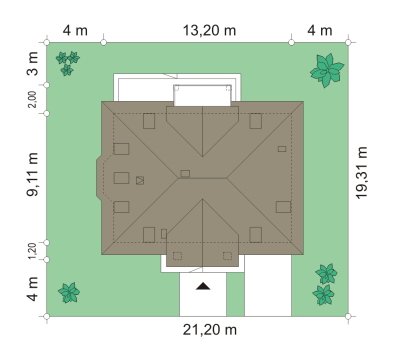 - Min. wymiary działki 21.20x19.31 m