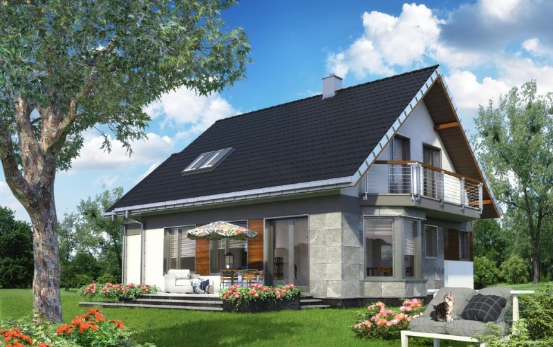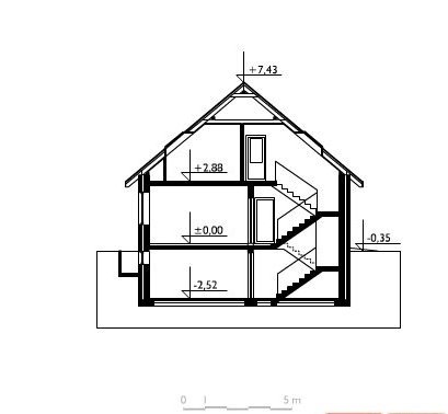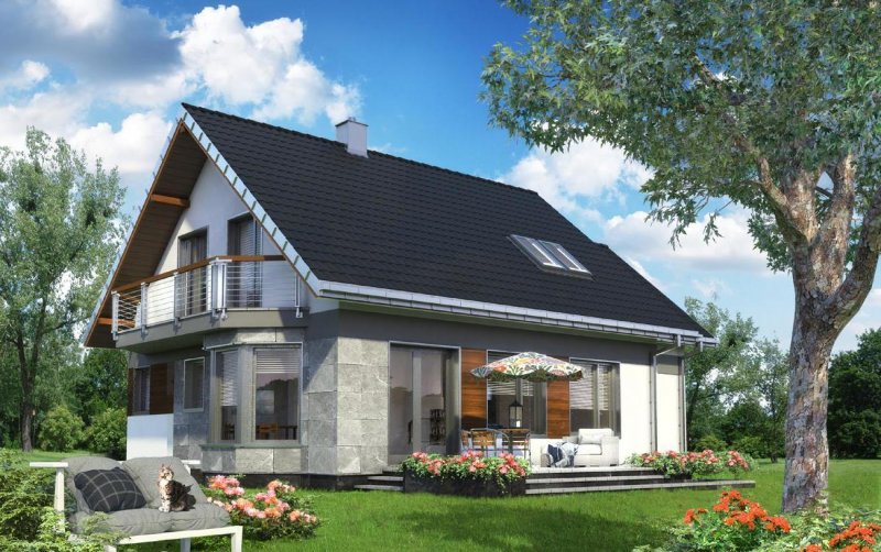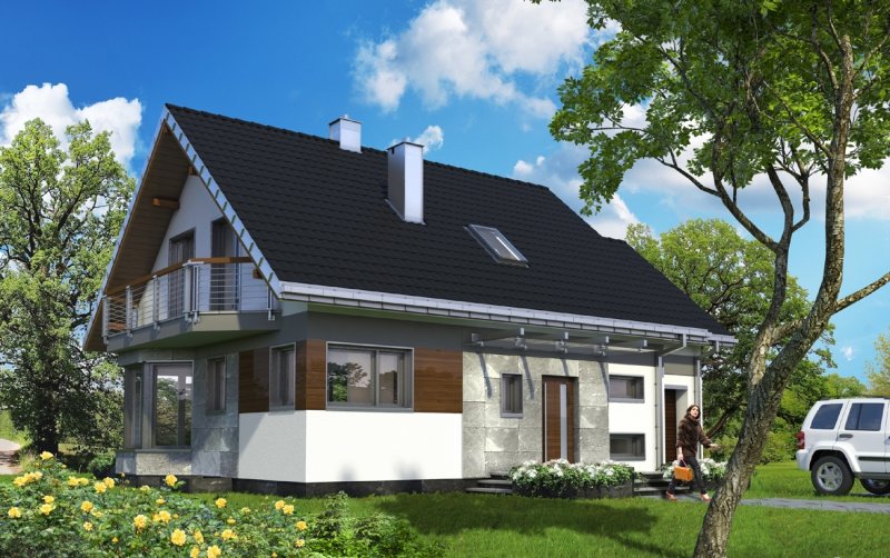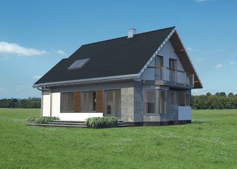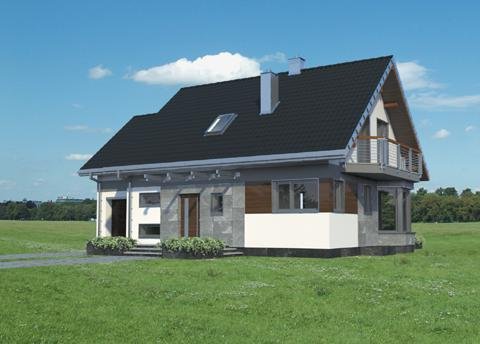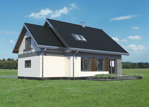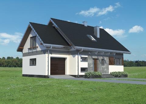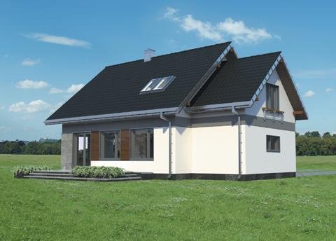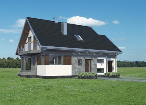 Całkowite podpiwniczenie domu jednorodzinnego przewiduje zazwyczaj garaż. Projekt domu Sybilla, jest pod tym względem wyjątkowy, bo, jako jedyny z użytkowym poddaszem z zakresu powierzchni 120-130m2, ma garaż dostawiony w poziomie terenu, bez powiększającej go kotłowni (tę przewiduje, wraz z innymi pomieszczeniami gospodarczymi, kondygnacja podziemna). Dzięki temu część mieszkalna wyraźnie dominuje w sylwetce budynku. W układzie funkcjonalnym nie wydzielono dodatkowego pokoju na parterze, pozostawiając obszerną, otwartą przestrzeń życia rodzinnego z dużą kuchnią. Projekt domu Sybilla wyróżnia także oszczędne, bo niepełne, wykorzystanie obrysu poddasza. Niska ścianka kolankowa pod dwuspadowym dachem decyduje o niedużej powierzchni użytkowej (i kubaturze do ogrzewania!) czterech sypialni. Ograniczona jest również wysokość budynku do kalenicy, co kształtuje tradycyjne, horyzontalne proporcje Sybilli. Przy zwartej bryle i umiarkowanym charakterze nowoczesnego detalu zaproponowanego w elewacjach, stawia to Sybillę w rzędzie projektów łatwo wpisujących się w naturalny krajobraz.