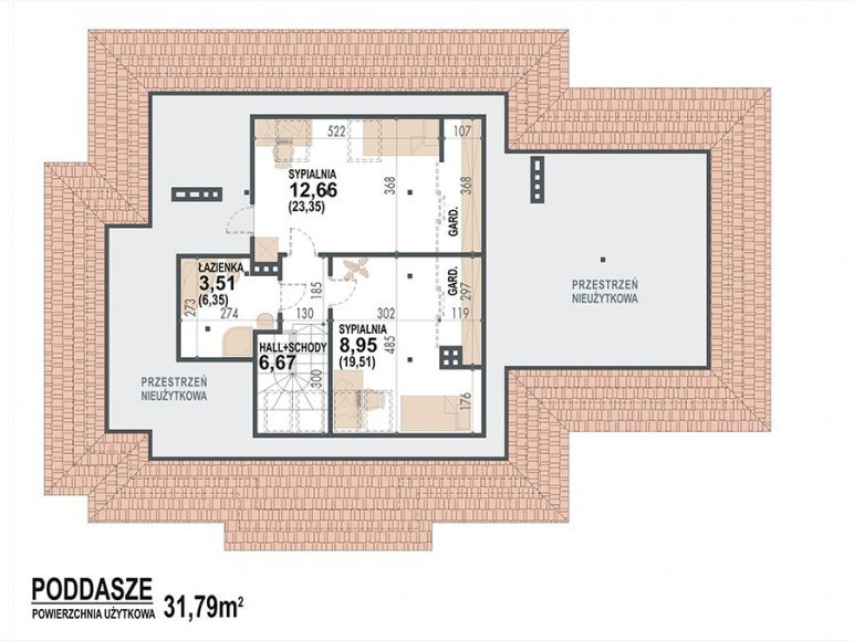 | dach | wielospadowy o konstrukcji drewnianej z pokryciem z dachówki ceramicznej, cementowej lub blachodachówki |