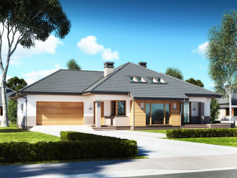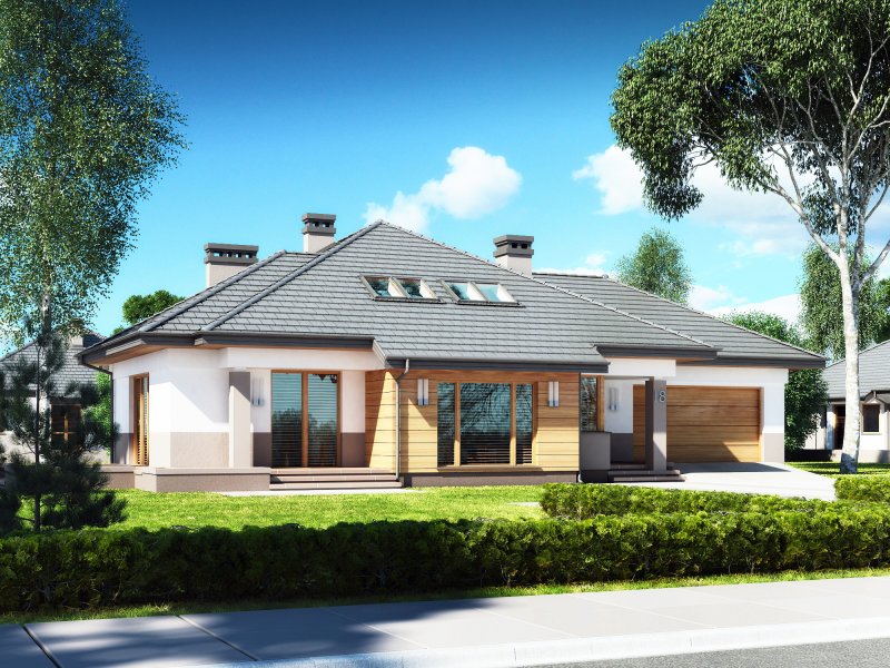 Szecherezada N 2G to nowoczesna wersja domu o charakterze rezydencji, cieszącego się dużym zainteresowaniem Inwestorów. Projekt przewiduje zagospodarowanie poddasza – poddasze jest niewielkie ze względu na konstrukcję dachu. Zaprojektowano inny podział niż w klasycznych domach z użytkowym poddaszem – strefa dzienna znajduje się na parterze, podobnie jak część strefy nocnej. Dwie sypialnie, znajdujące się na poddaszu, przeznaczono dla dzieci lub gości. Ten projekt wymaga większej powierzchni do zabudowy, ale pięknie wkomponowuje się w otoczenie, bryła jest zwarta, masywna. Dodatkowe stanowisko w garażu może być praktycznym rozwiązaniem nie tylko dla osób posiadających dwa samochody – z powodzeniem może służyć za pomieszczenie gospodarcze.